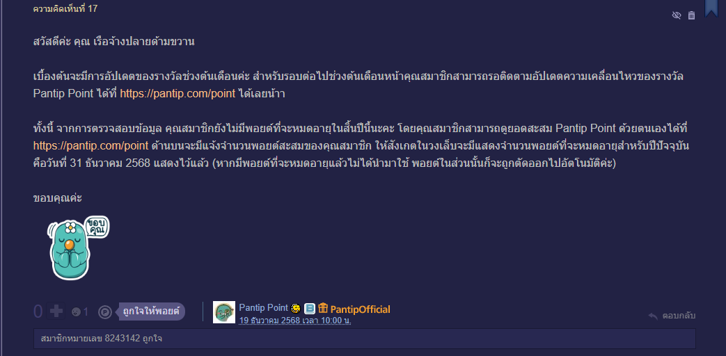 เหลือแต้มสะสม Pantip Point กี่แต้มกันครับ ?