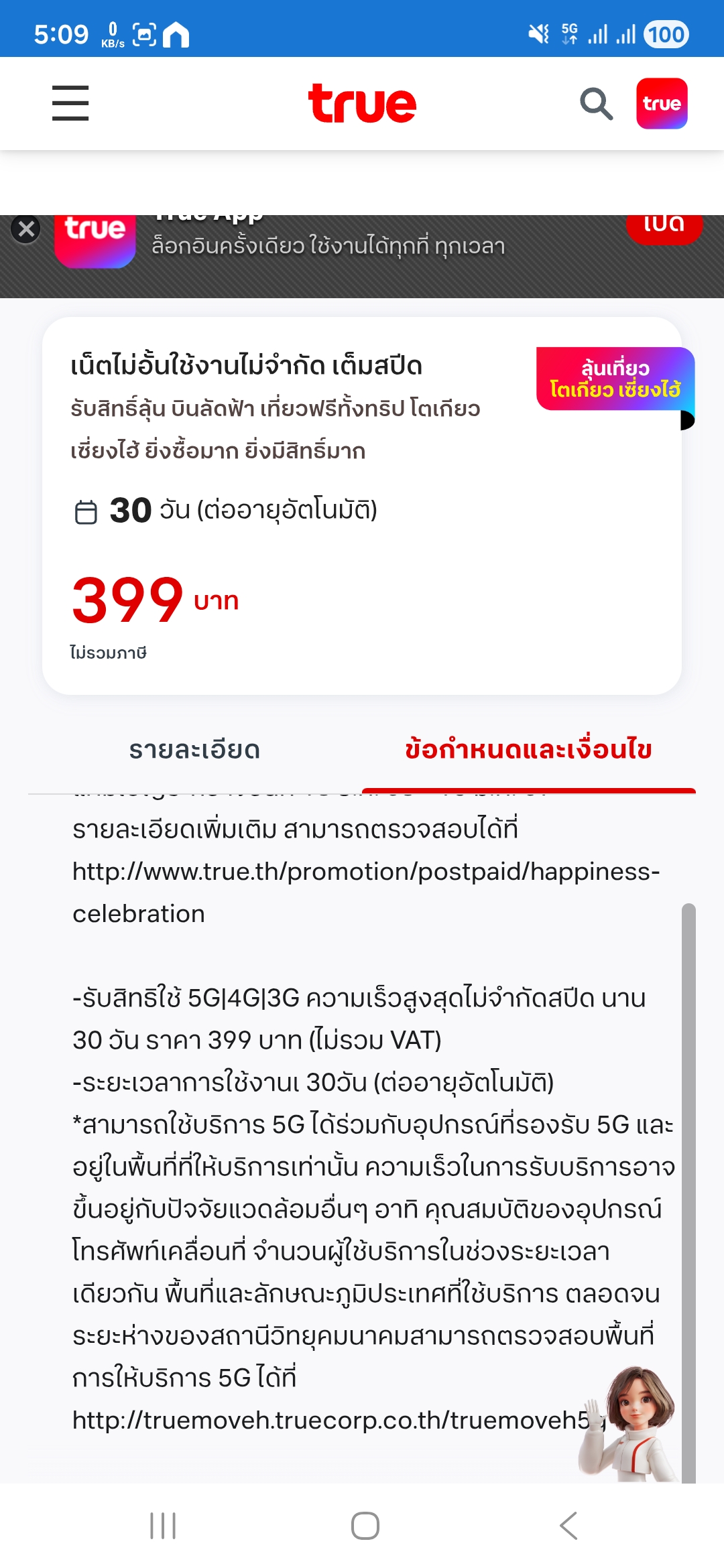 สอบถามแพ็กเกจเน็ตทรู 399 บาท ไม่อั้น ไม่จำกัด เต็มสปีด มีจริงไหมครับ