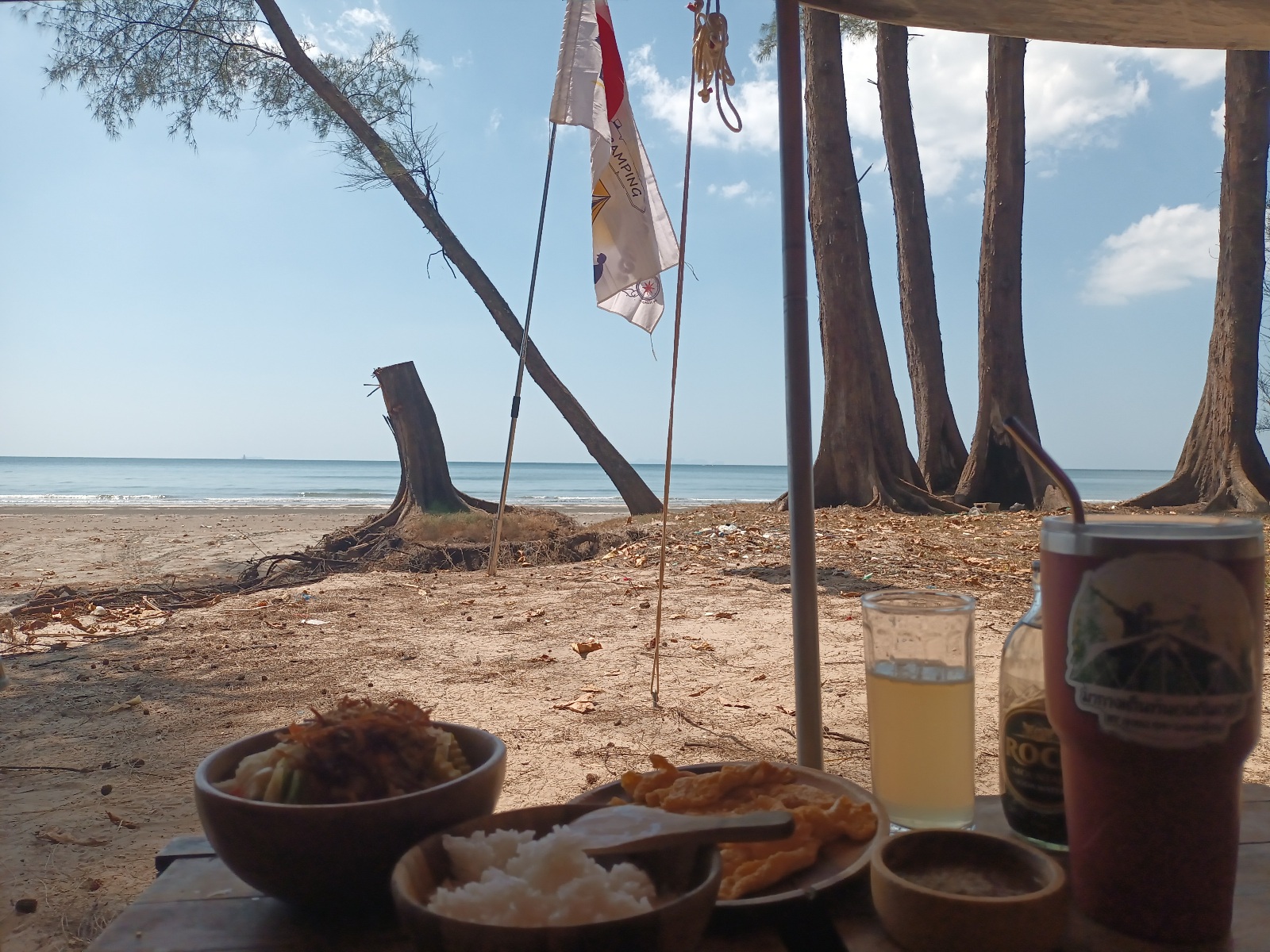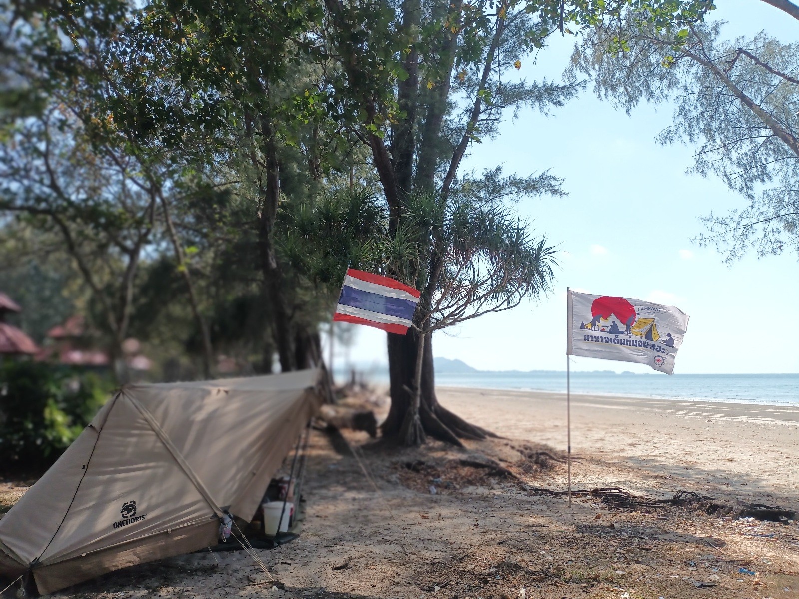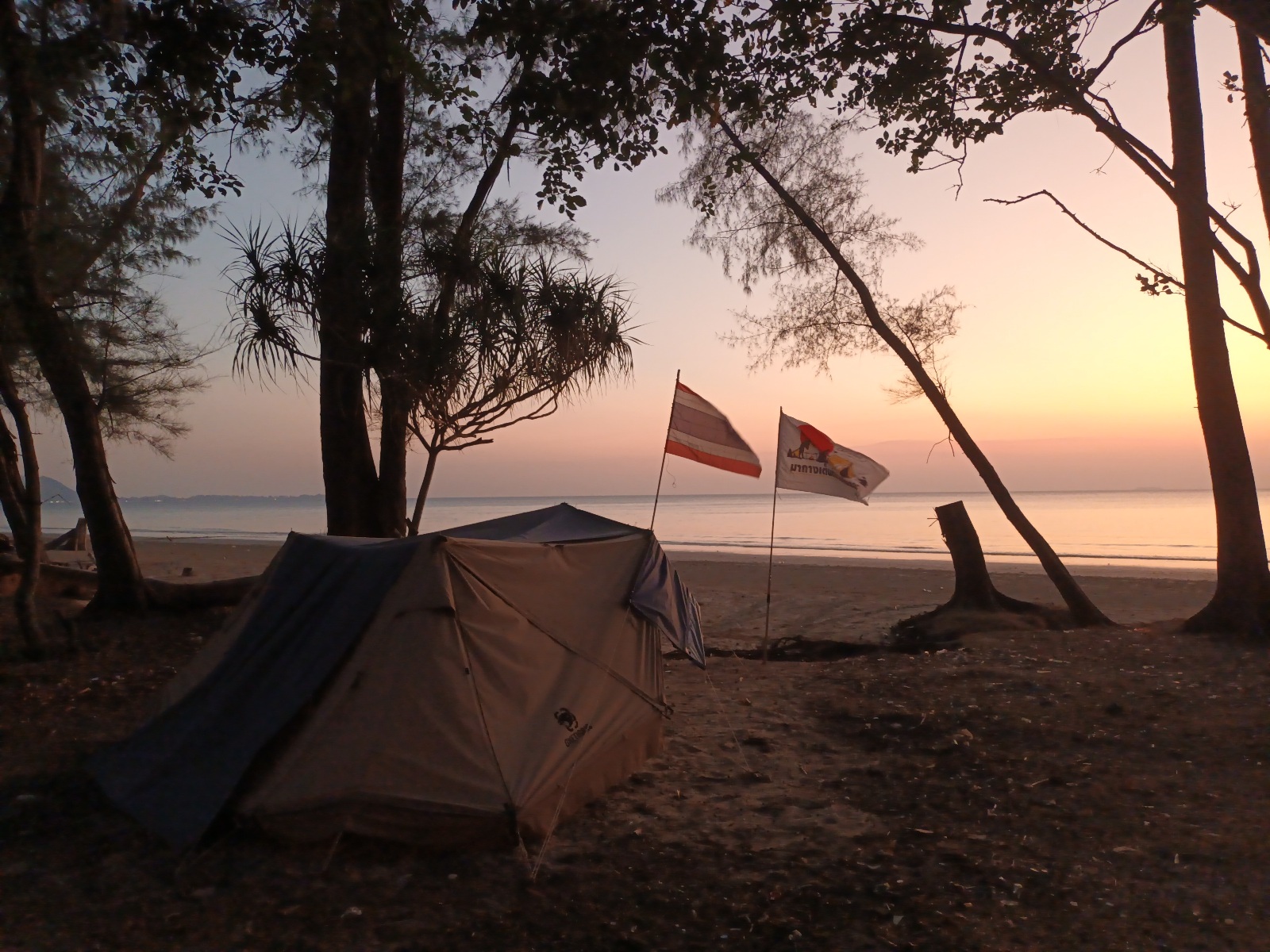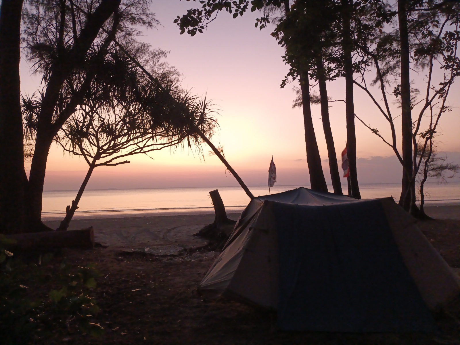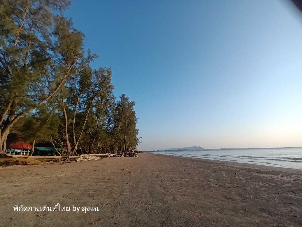 เลือกริมหาดฝั่งขวามือ เพราะพรุ่งนี้จะมีน้องๆ มาเข้าค่าย จะได้ห่างจากน้องๆ พอสมควร บรรยากาศริมทะเลและชายหาดสวยๆ หาดค่อยๆ ลาดลง กว้าง ยาว ที่สำคัญไม่ค่อยมีคลื่นลม