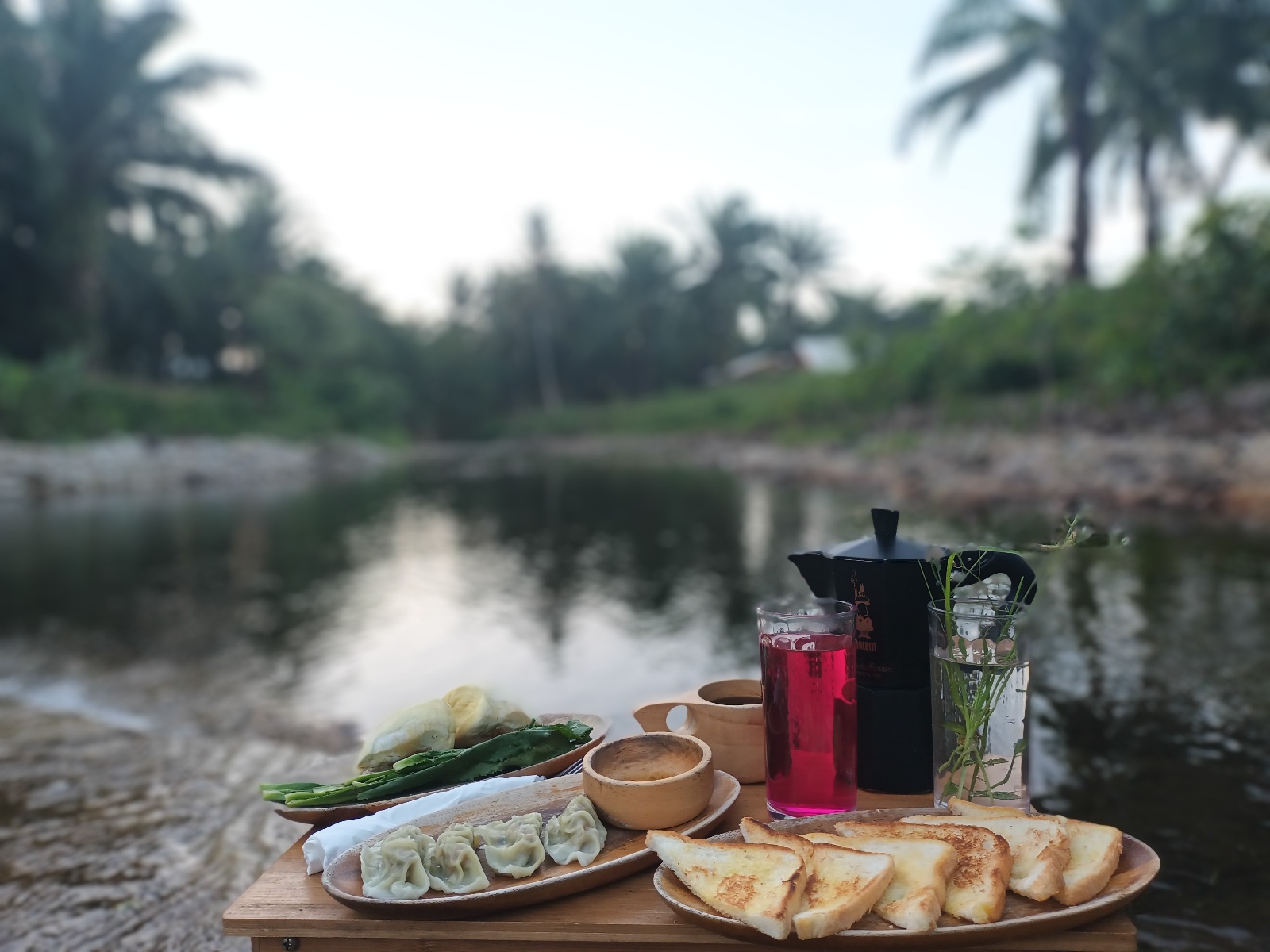 ใช้เวลาครึ่งชม.ได้ มื้อเช้าก็พร้อม ยกลงไปนั่งทำทรงตรงสันเขื่อนกั้นคลอง น้ำเย็นๆ สดชื่น ดีต่อใจจริงๆ อากาศสดชื่น สบายๆ อาหารธรรมดาก็อร่อยได้ครับ