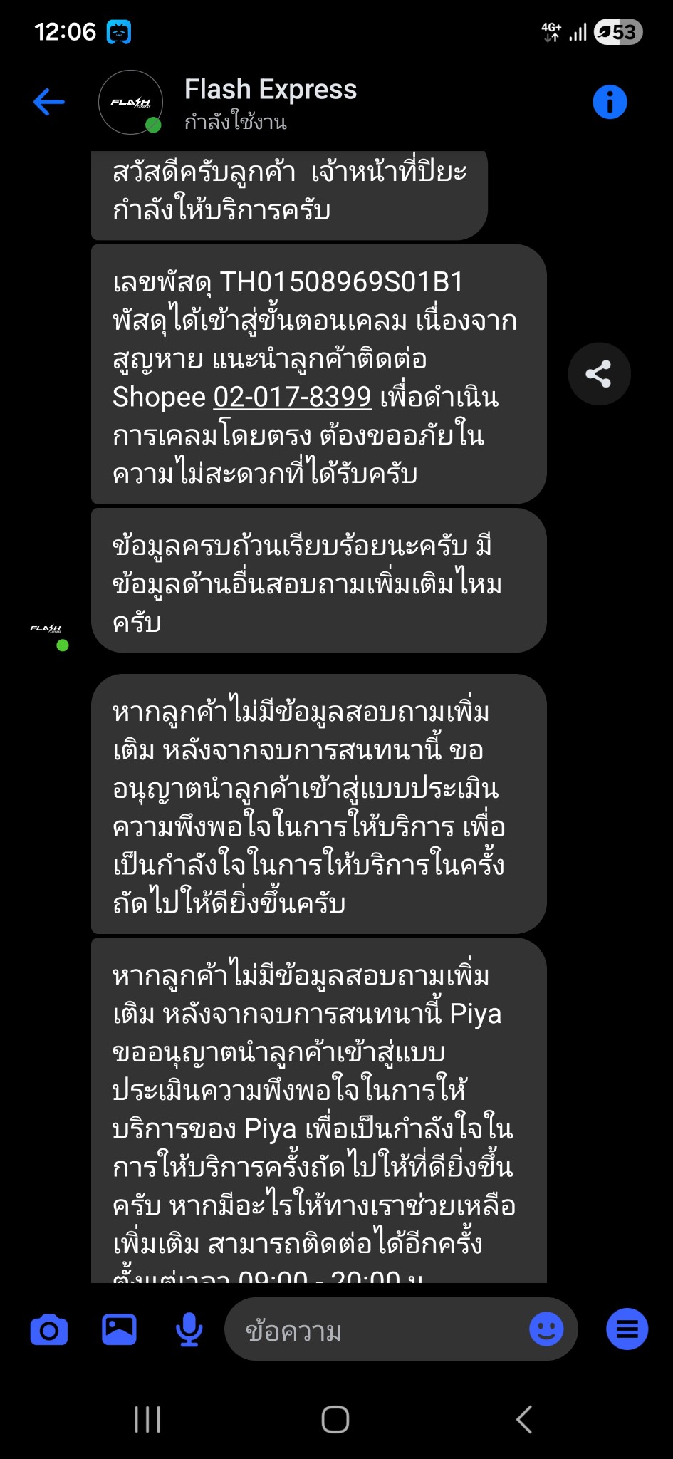 Flashว่าพัสดุหายให้แจ้งทีมกับ shopee แล้ว shopee ก็บอกให้แฟตต้องยืนยันว่าสูญหายจริงก่อน