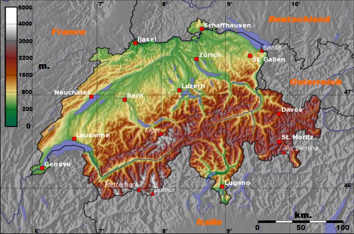 ภูมิประเทศสวิตเซอร์แลนด์ ที่ราบใหญ่อยู่ที่ภาคเหนือ