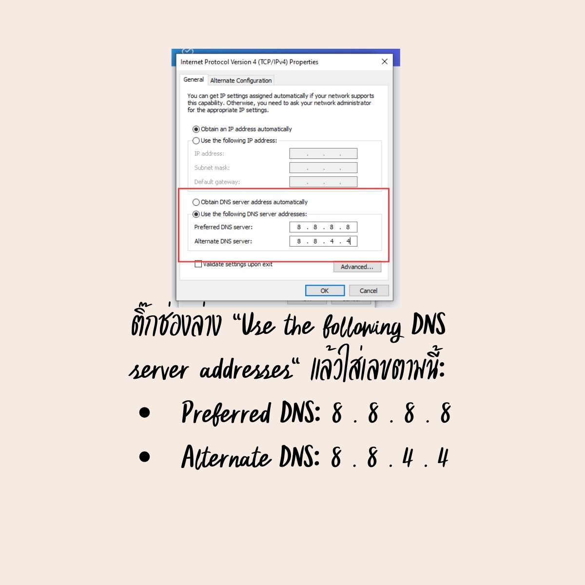 ✅ Use the following DNS server addresses