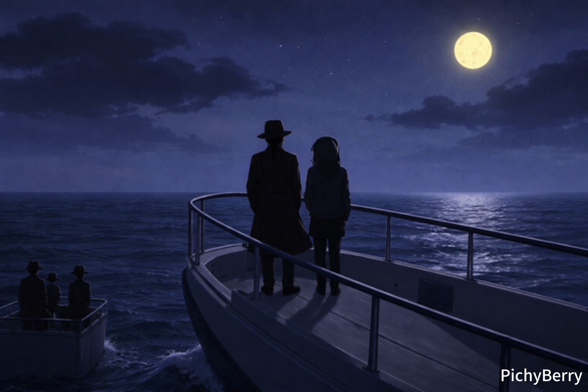 ขึ้นเรือเล็กที่รออยู่ในเงามืดของท่าเรือ