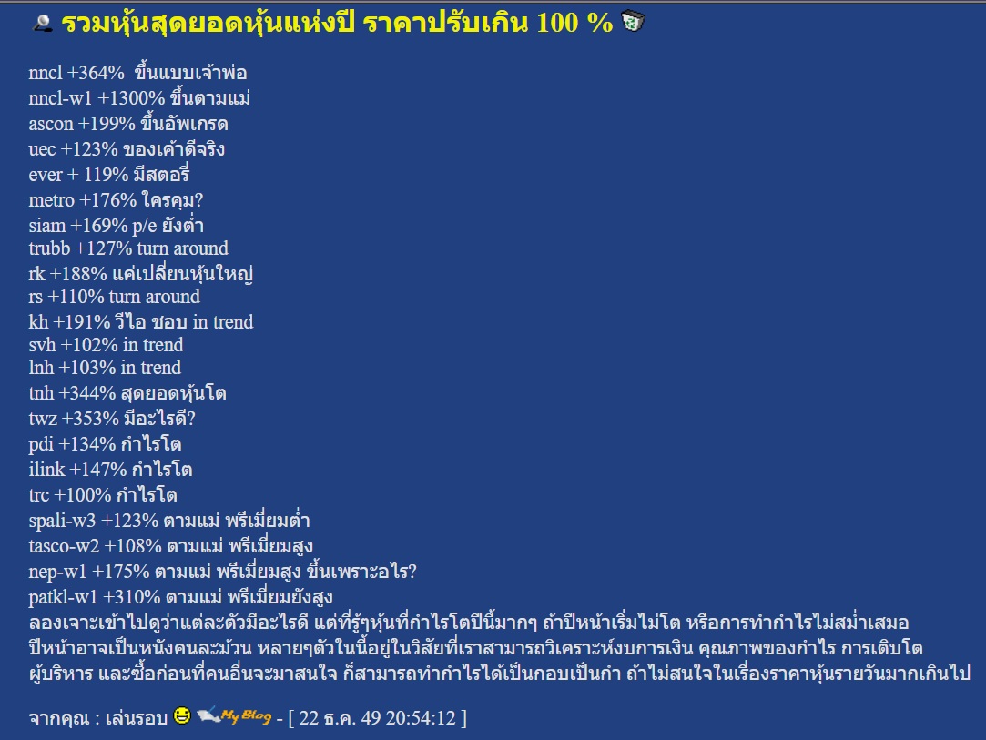 ดูคนในห้องสินธรคุยกันเมื่อปี 49 แล้วอิจฉาจังครับ หุ้นขึ้นกันหลายเด้ง หลายตัวเลย
