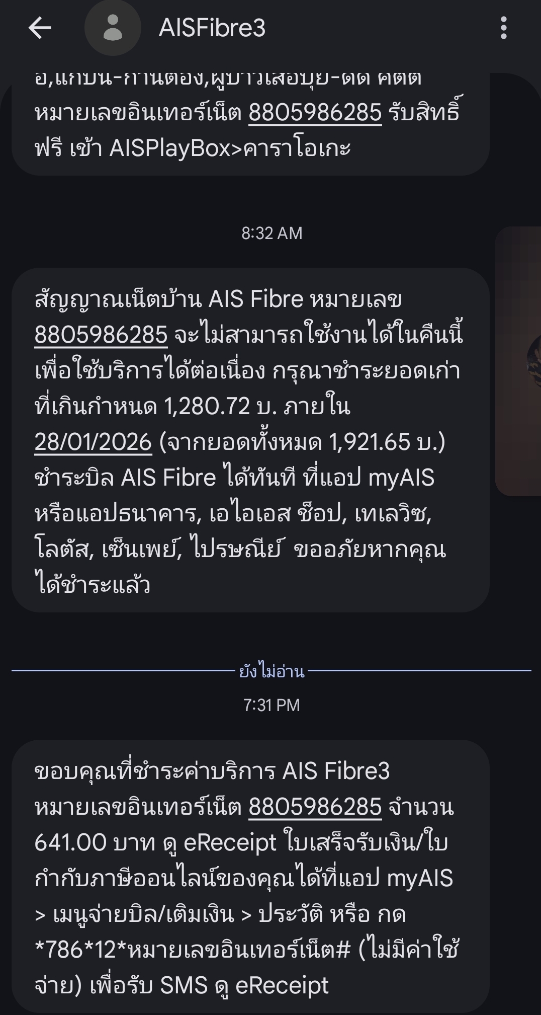 มีตังจ่ายแค่งวดเดียวช่วยพิจารณาไม่ระงับสัญญาณได้ไหมคับAis fiber
