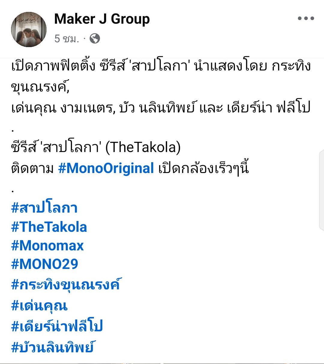📸 เปิดภาพฟิตติ้ง ซีรีส์ 'สาปโลกา'