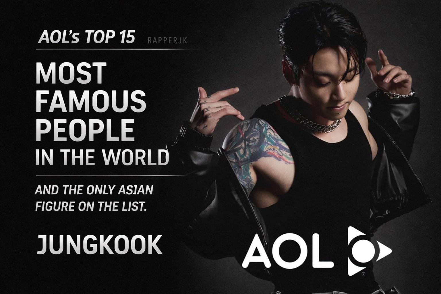 Jungkook เป็นนักร้องชาวเอเชียคนเดียวที่ถูกจัดให้เป็นหนึ่งในบุคคลที่มีชื่อเสียงที่สุดในโลกโดย AOL ร่วมกับคนดังระดับโลก
