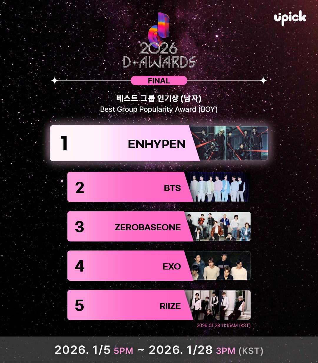 จัดโดย UPICK แพลตฟอร์มชื่อดังของเกาหลี ชนะด้วยคะแนนโหวต 148,076,960 คะแนน อ่านไม่ผิดมากกว่าหนึ่งร้อยสี่สิบแปดล้านคะแนนด้วยกัน โดนเบม่อนเป็นผู้ชนะฝ่ายไอดอลหญิง ส่วนฝ่ายไอดอลชายคือ ENHYPEN