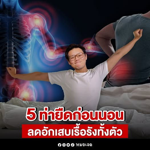 หลายคนพออายุเข้าวัยเลข 4 แล้วเริ่มมีอาการปวดเมื่อยเรื้อรัง ข้อฝืด กล้ามเนื้อตึง นอนไม่ลึก ตื่นมาไม่สดชื่น อันนี้ไม่ได้มาจาก “อายุ” เพียงอย่างเดียวนะครับ แต่มาจากการไหลเวียนเลือดไม่ดี กล้ามเนื้อตึงสะสม ระบบประสาทเครียดค้าง และไม่เข้าสู่โหมดซ่อมแซมตอนกลางคืน การทำท่าที่ “เบา ปลอดภัย ไม่กดข้อ ไม่บิดแรง” จะช่วยลดการอักเสบเรื้อรัง ฟื้นฟูระบบไหลเวียน และทำให้นอนดีขึ้นแบบไม่เสี่ยงต่อกระดูกและข้อ วันนี้มาลองทำท่ายืดก่อนนอนกันตามนี้ดูนะครับ