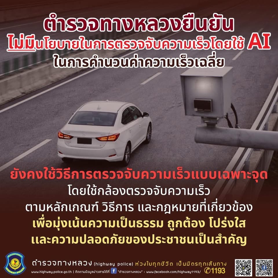 ตำรวทางหลวงยืนยัน ไม่มีนโยบายในการตรวจจีบความเร็วโดยใช้ AI