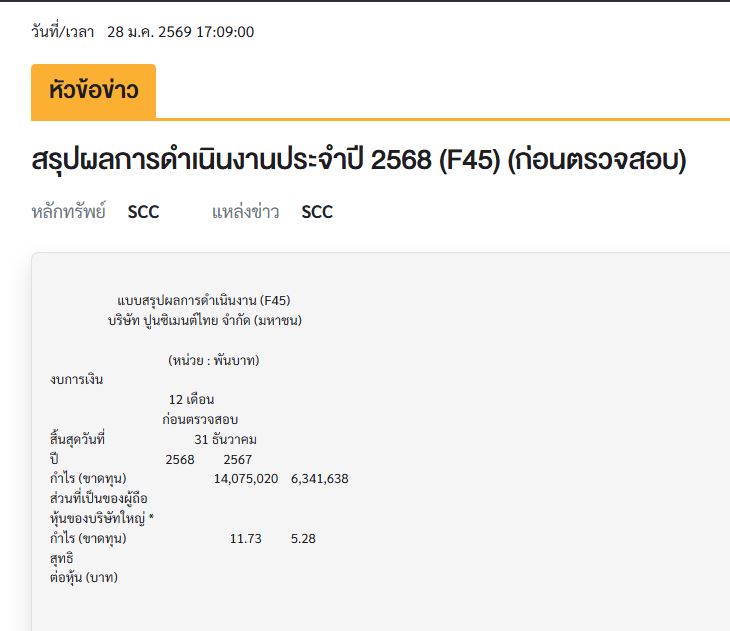 ปูนใหญ่ SCC ประกาศแจกปันผล แต่หุ้นลง
