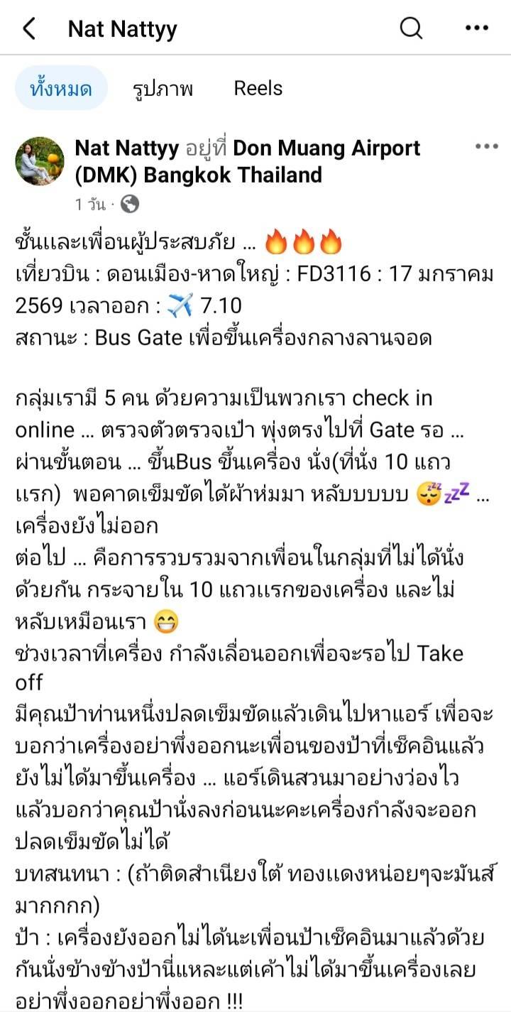 ชี้แจงกรณีเที่ยวบิน FD3116 ดอนเมือง-หาดใหญ่ วันที่ 17 มกราคม 2569