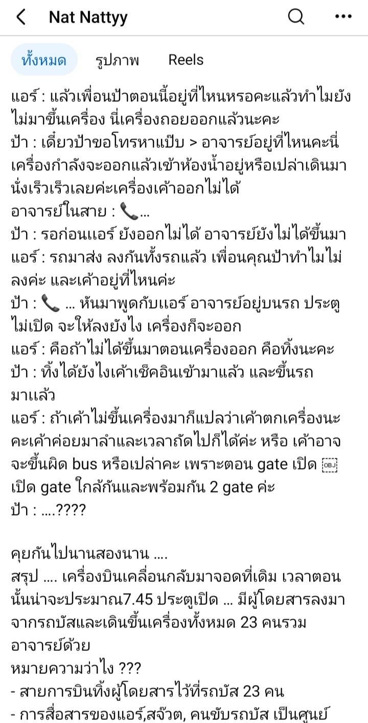 ป้า : 📞 … หันมาพูดกับเเอร์ อาจารย์อยู่บนรถ ประตูไม่เปิด จะให้ลงยังไง เครื่องก็จะออก