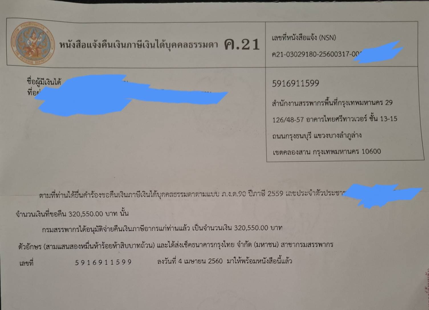 ปกติผมจะเก็บเอกสารภาษีไว้ 10 ปี แล้วค่อยทำลาย ไปเห็นเอกสารเก่า สมัยก่อนยังต้องรอรับเช็คคืนภาษีทางไปรณีย์อยู่เลย
