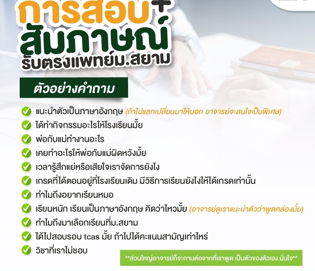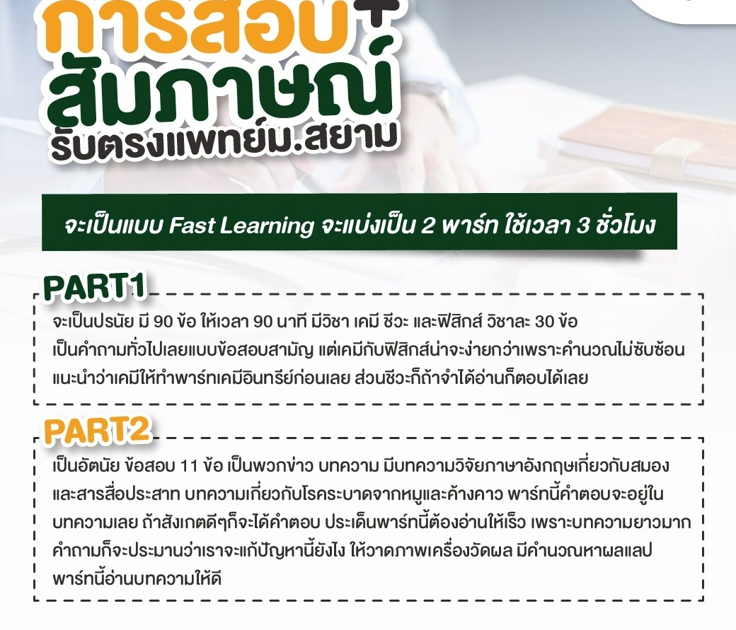 เจาะลึกสอบตรง "แพทย์ ม.สยาม" ฉบับละเอียดยิบ! ข้อสอบออกแบบไหน? สัมภาษณ์ถามอะไร? (เด็ก 69-70 ห้ามพลาด)