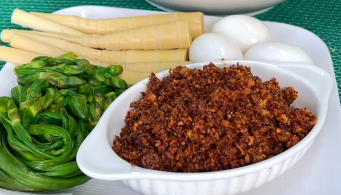 สมุนไพร: หอมแดง, กระเทียม, พริกสด, พริกแห้ง เน้นความหอมจากการคั่วหรือเจียว