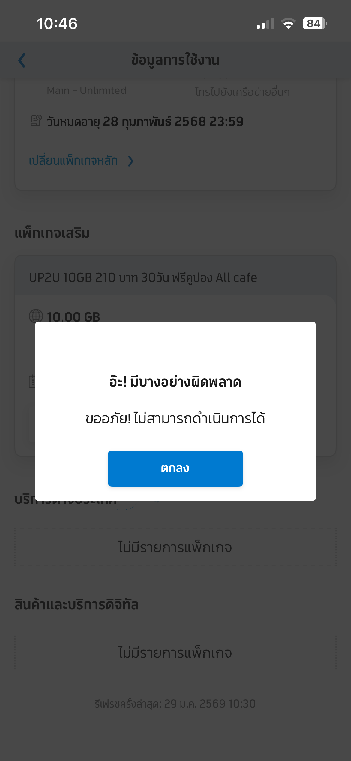 ต้องการยกเลิก แพ็กเสริม UP2U 10GB 210 บาท 30วัน ต่ออัตโนมัติ ฟรีคูปอง All cafe ไม่สามารถยกเลิกในAPP ได้
