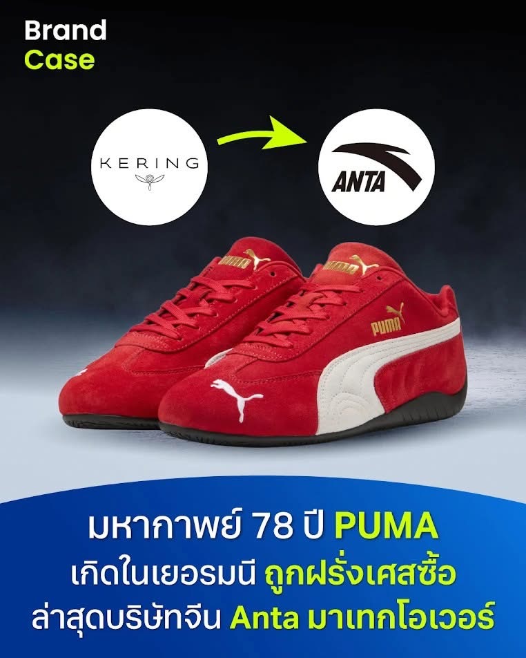-เพิ่งมีข่าวใหญ่ในวงการแบรนด์กีฬา คือ PUMA กำลังถูกซื้อโดยบริษัทสัญชาติจีน Anta Group เจ้าของแบรนด์ดังอย่าง Anta, Salomon, Wilson, Peak Performance