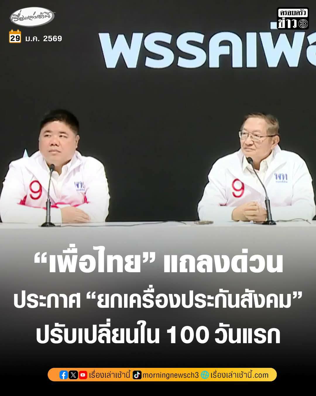 #เรื่องเล่าเช้านี้ #ครอบครัวข่าว3 #พรรคเพื่อไทย #ประกันสังคม