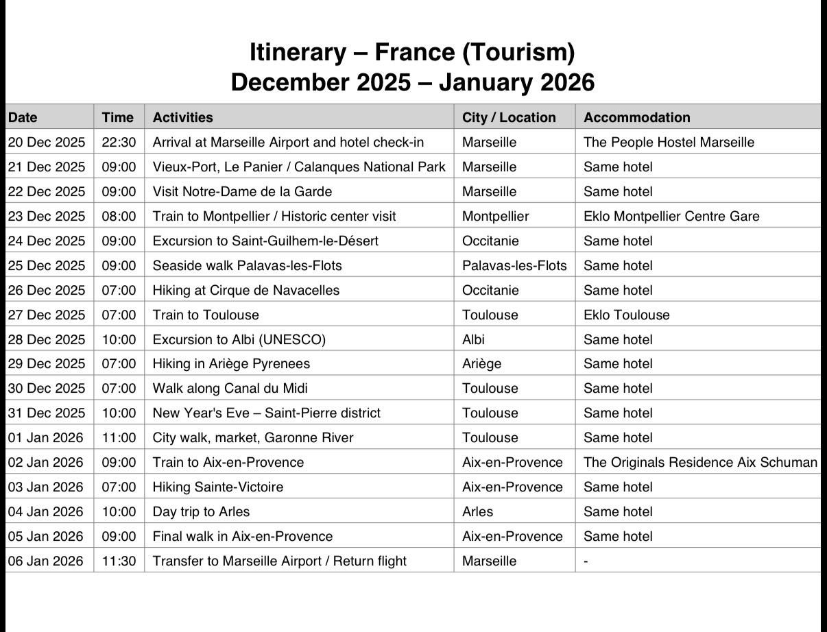 6️⃣ แผนการเดินทาง (Itinerary) ทำเอง