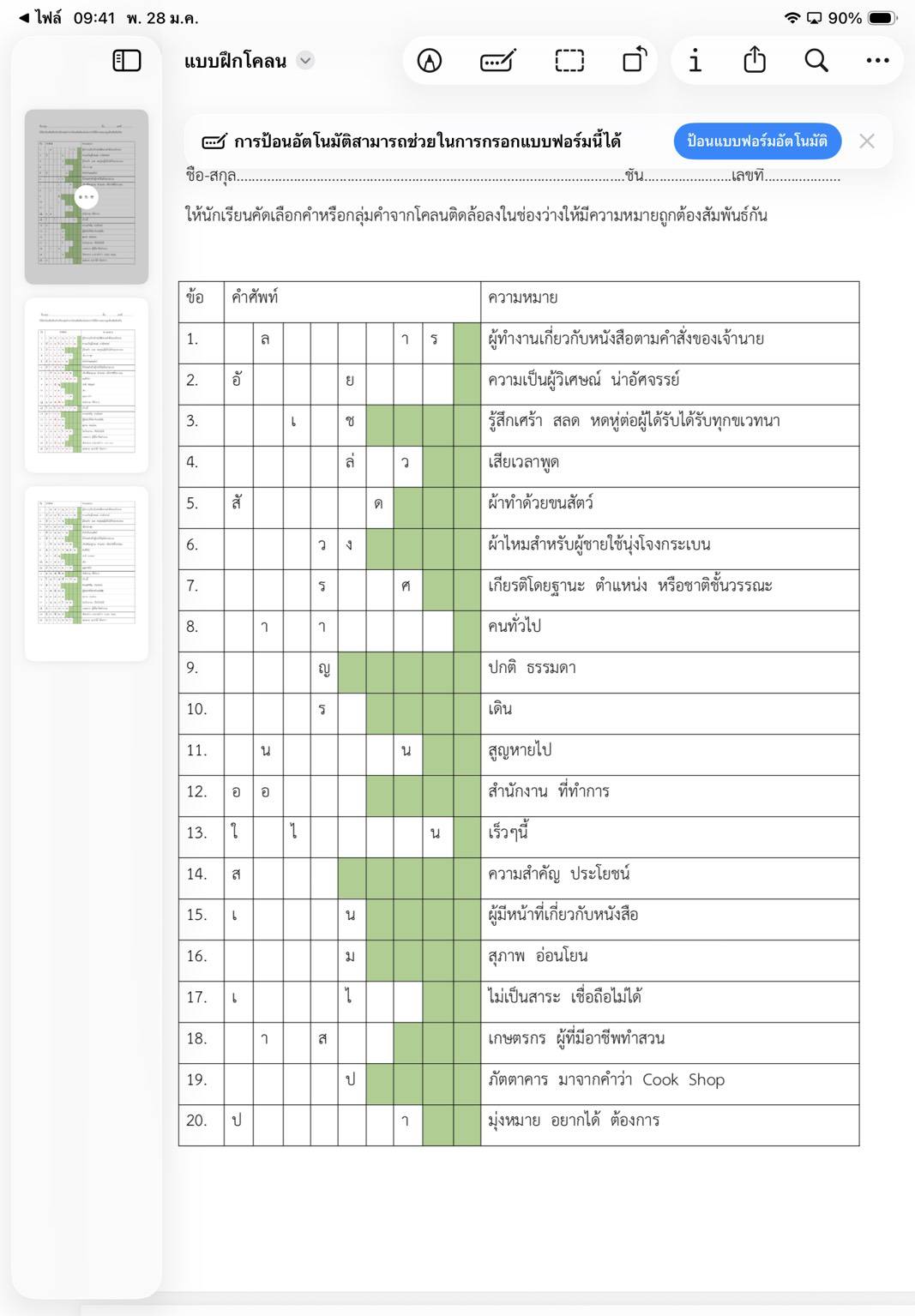 ช่วยเติมคำลงในช่องสีขาวทีครับ