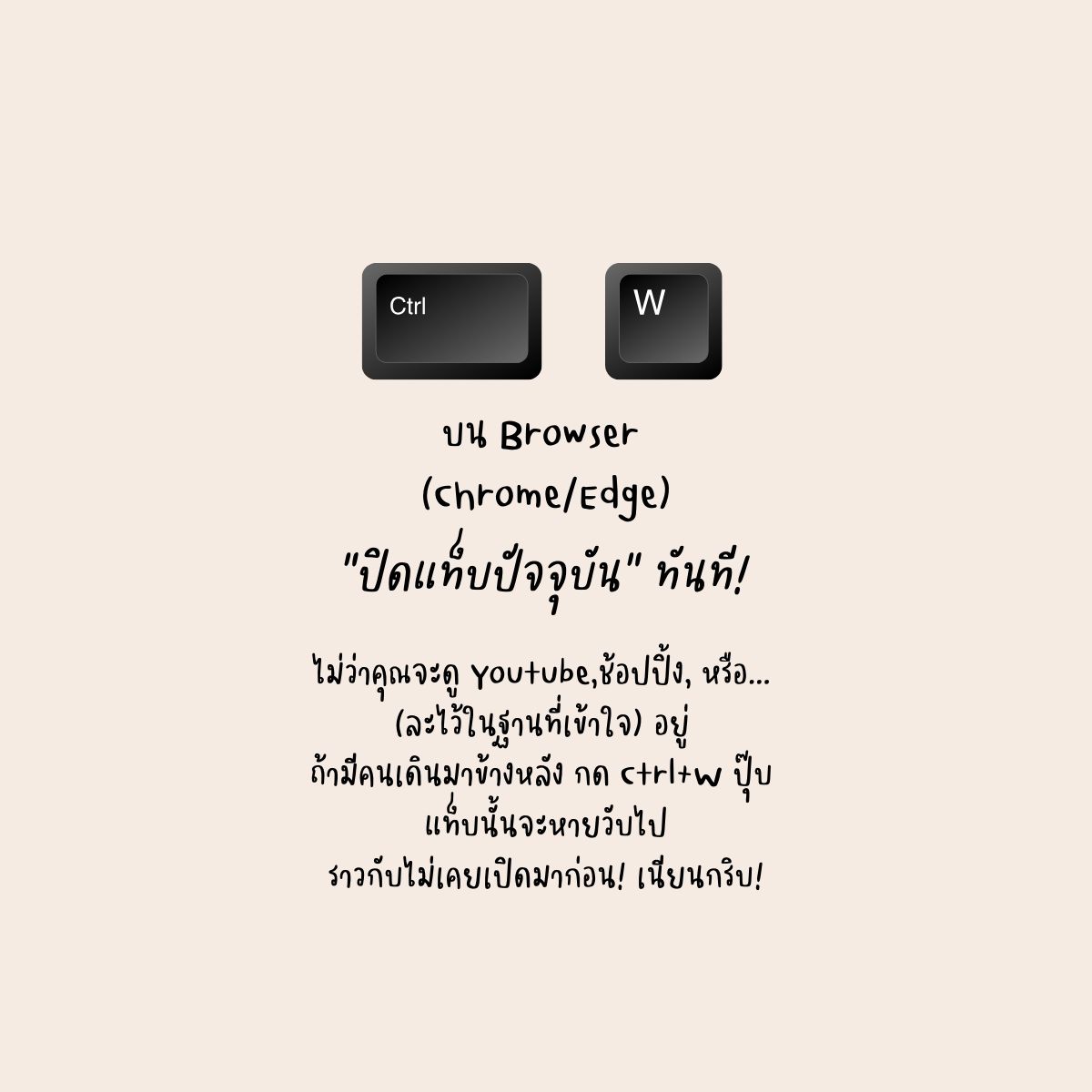 ทางรอดของคนแอบ (แบบสุภาพ) = Ctrl + Wนี่คือคีย์ลัดที่ช่วยชีวิตคนทำงานมาแล้วนับไม่ถ้วน บน Browser (Chrome / Edge)
