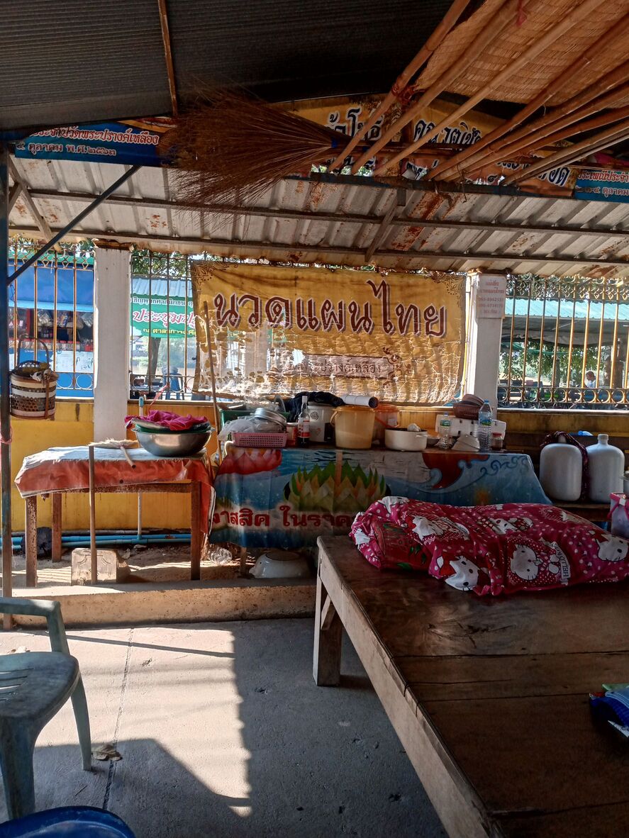 มีทำลูกประคบตรงแคร่ด้านข้างวัด กลิ่นหอมฟุ้งเลย