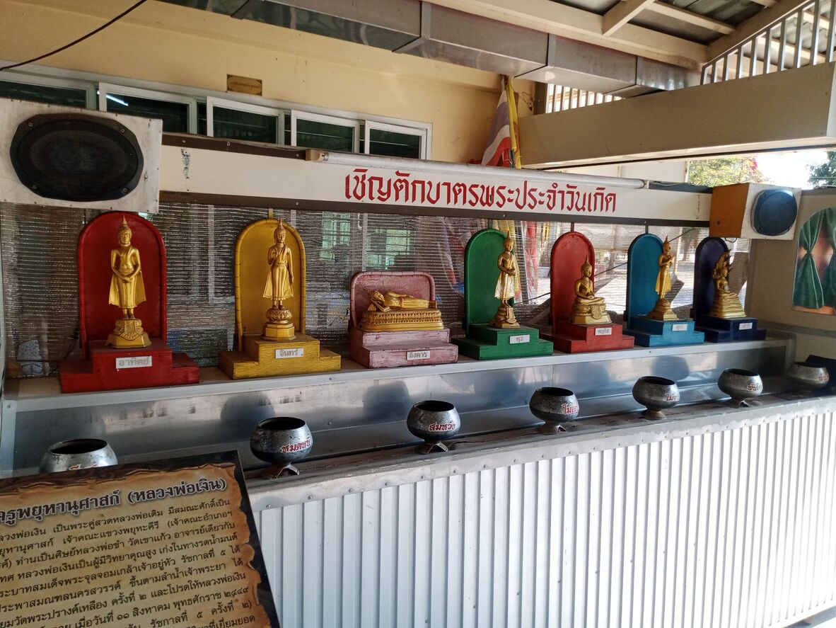 ด้านในวัด มีตักบาตรพระประจำวันเกิด