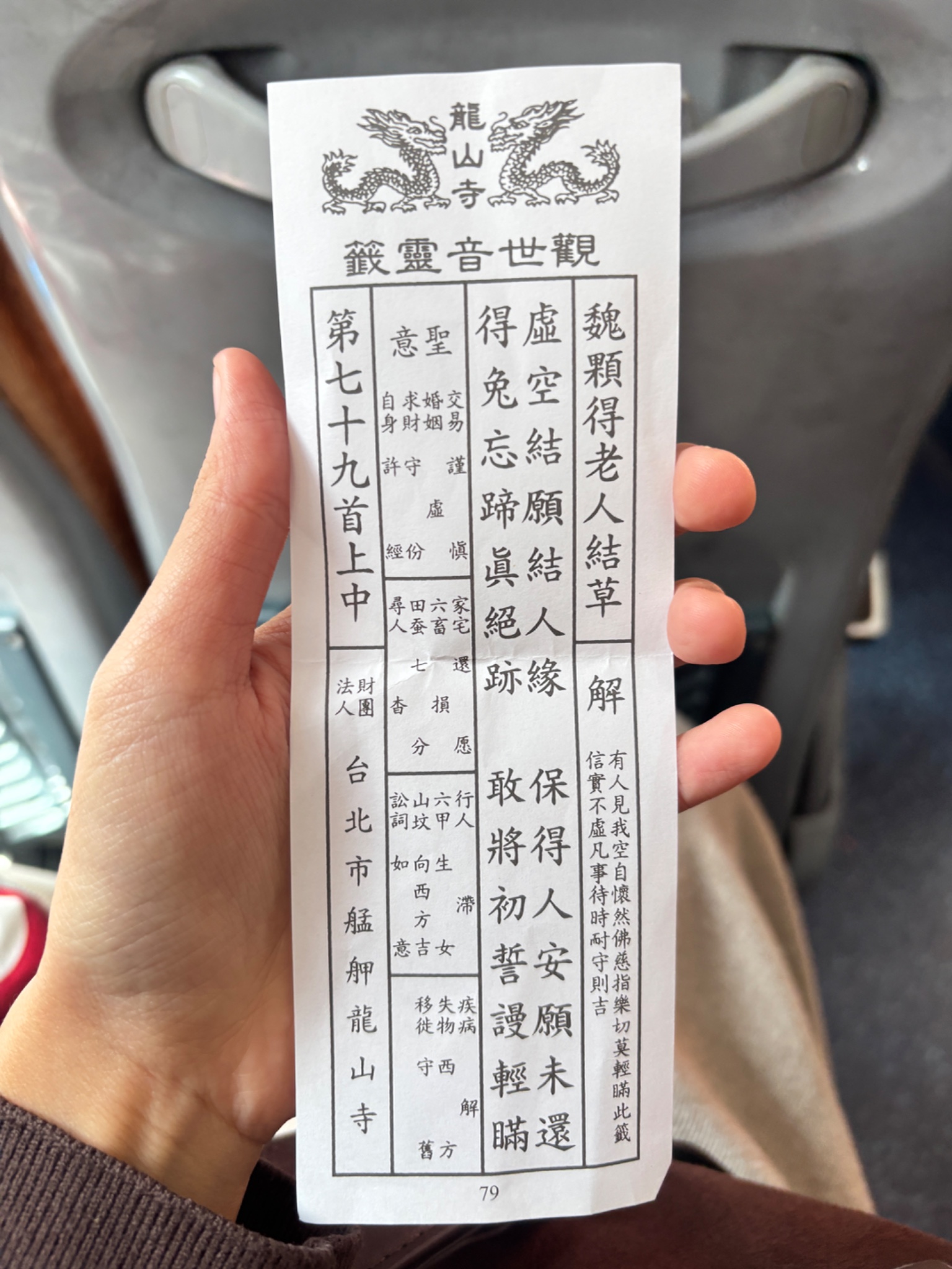 เสี่ยงเซียมซีวัดหลงซานไต้หวันมา อ่านไม่ออกครับ รบกวนช่วยแปลหน่อยครับ ขอบคุณครับ