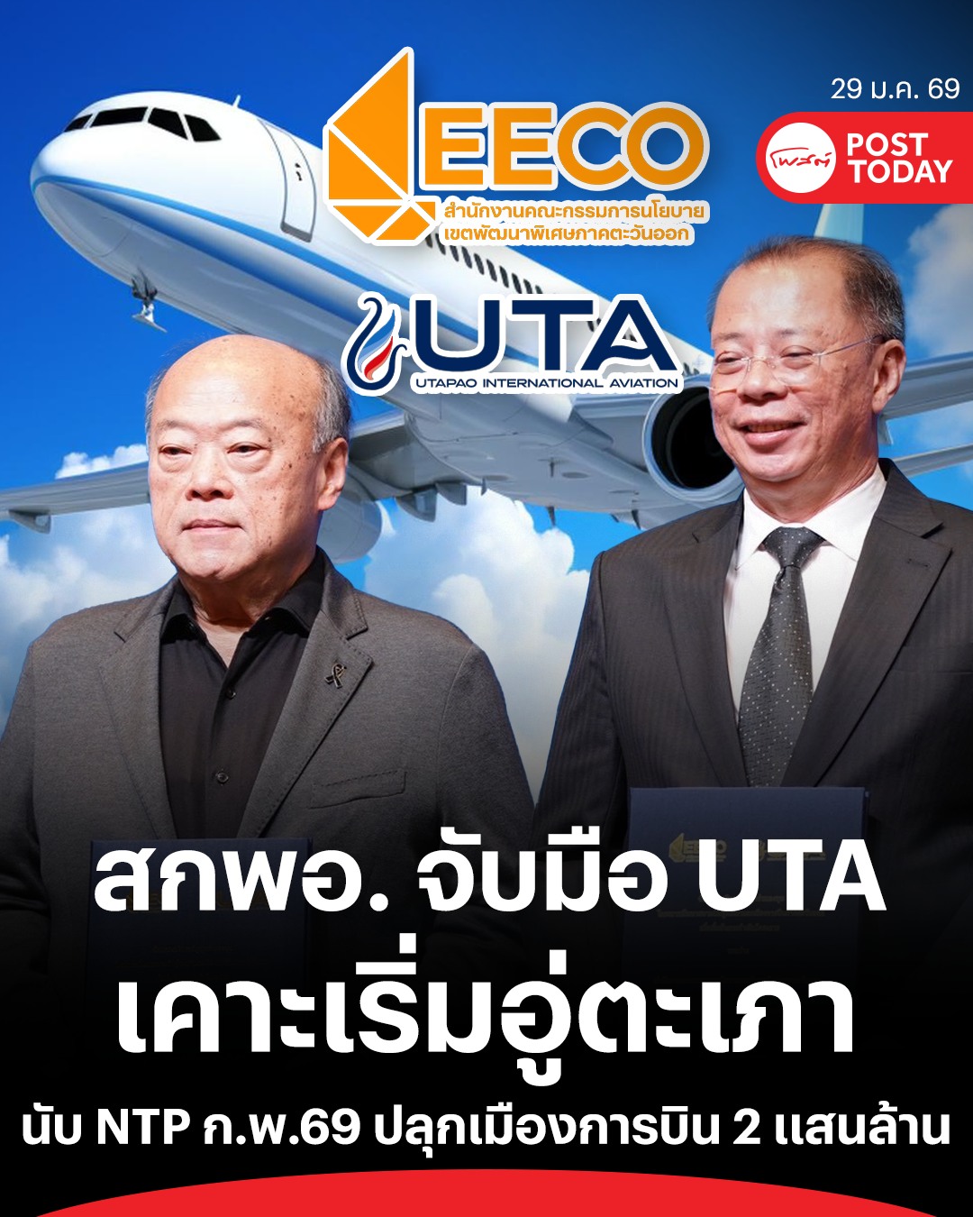 การพัฒนาสนามบินอู่ตะเภาและเมืองการบินภาคตะวันออกเดินหน้าอีกก้าวสำคัญ เมื่อวันที่ 29 มกราคม 2569 สำนักงานคณะกรรมการนโยบายเขตพัฒนาพิเศษภาคตะวันออก (สกพอ.) หรือ EECO นำโดย ดร.จุฬา สุขมานพ เลขาธิการ สกพอ. ร่วมกับบริษัท อู่ตะเภา อินเตอร์เนชั่นแนล เอวิเอชั่น จำกัด (UTA) นำโดย นายกวิน กาญจนพาสน์ และนายพุฒิพงศ์ ปราสาททองโอสถ กรรมการบริษัทฯ ลงนามในข้อตกลงบริหารสัญญาร่วมลงทุนโครงการพัฒนาสนามบินอู่ตะเภาและเมืองการบินภาคตะวันออกอย่างเป็นทางการ ณ ห้อง Auditorium ชั้น 33 อาคารบีทีเอส วิชันนารี ปาร์ค โดยมีผู้บริหารระดับสูงจากทั้งสองฝ่ายร่วมเป็นสักขีพยาน