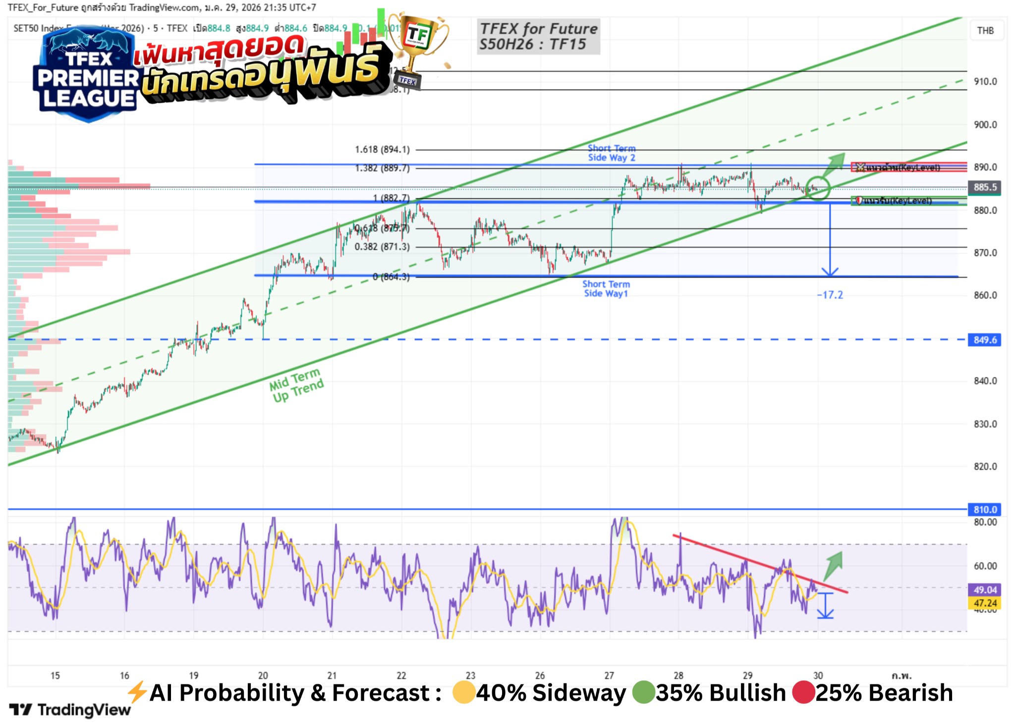 🟡 Sideway Plan : Sideway กรอบ 880 - 892