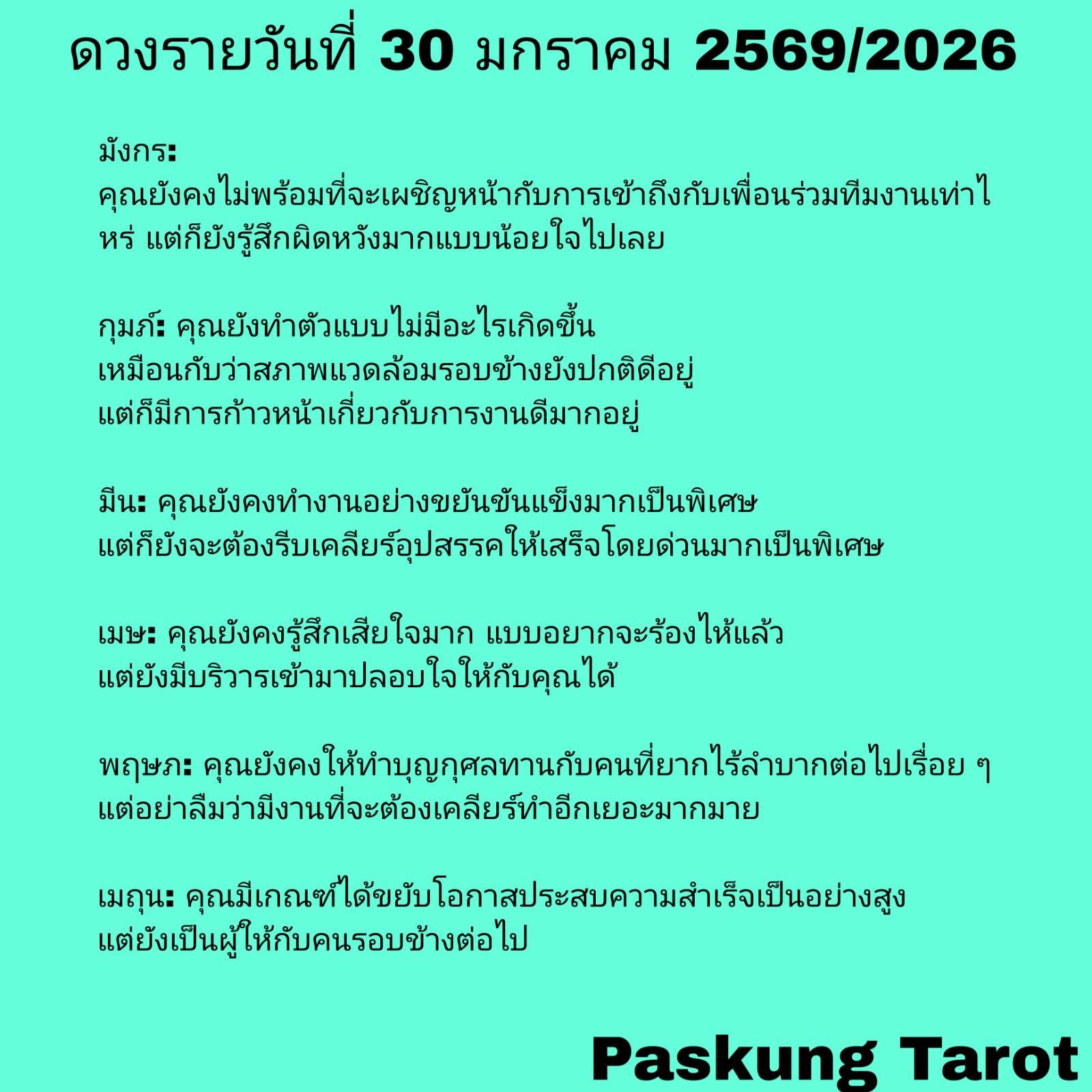 ดวงรายวันที่ 30 มกราคม 2569/2026