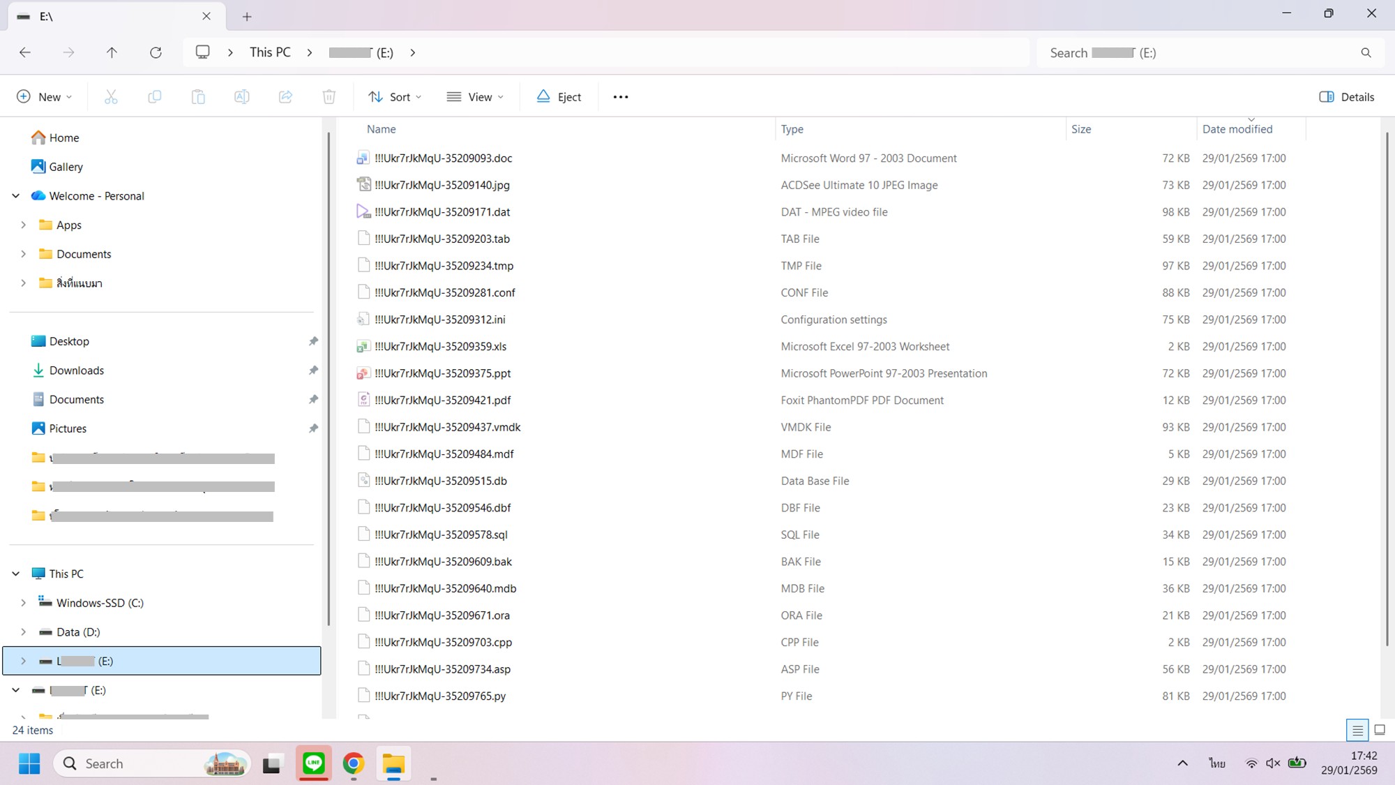 ผมมาสังเกตว่า ประมาณ เดือนที่ผ่านมา (ก่อนนี้ไม่แน่ใจว่าเป็นไหม เพราะไม่ได้สนใจสังเกต) เมื่อนำ flashdrive เสียบใช้กับ notebook ซึ่งเป็น flashdrive ตัวเดิมที่ใช้กับ notebook เครื่องนี้เป็นประจำมาปีกว่าแล้ว พบว่าใน folder ของ Drive : E ที่เสียบ flashdrive มีไฟล์แปลกๆแสดง แต่ตอนแรก ก็คิดว่าอาจเป็นไฟล์เบื้องหลังการใช้งานระบบ คล้ายๆ Tmp ก็ไม่ได้สนใจอะไร คิดว่าอาจเกิดจากการ update windows