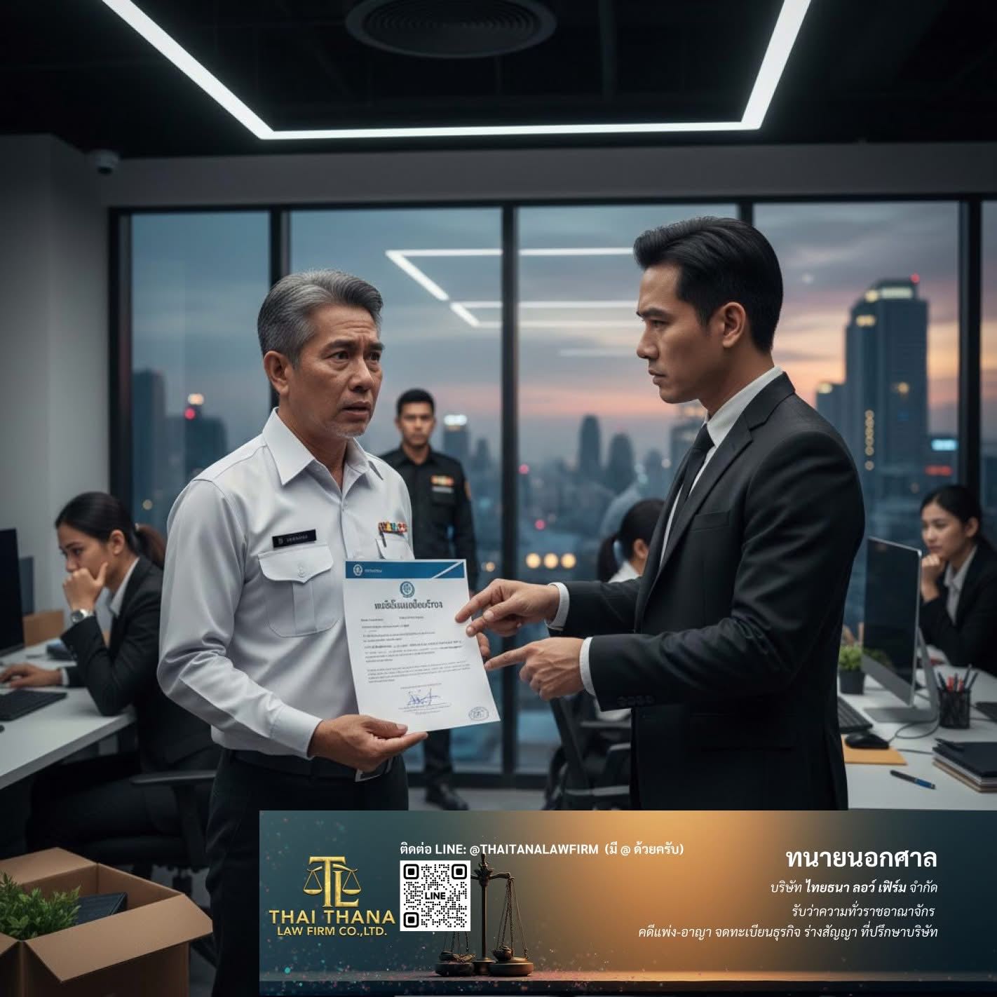 เงินก้อนนี้คือทุนชีวิตหลังเกษียณของคุณ อย่าเสี่ยงกับการเจรจาด้วยปากเปล่า หรือเซ็นเอกสารที่คุณไม่เข้าใจ ไทยธนา ลอว์เฟิร์ม พร้อมเป็นไม้เท้าค้ำยันทางกฎหมายให้คุณ: