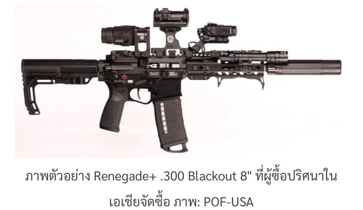 ทั้งนี้ Renegade+ ของ POF-USA มีขายลำกล้องสั้นที่สุดอยู่ที่ 9 นิ้ว ในปัจจุบัน ดังนั้น จึงเป็นไปได้ว่าผู้ซื้อปริศนาในเอเชียอาจเป็นชาติแรกของโลกที่ใช้ปืนมาตรฐาน AR15 กับกระสุน .300 Blackout ที่มีลำกล้องยาวเพียง 8 นิ้ว โดยทางบริษัทไม่ได้ระบุว่าจัดซื้อจำนวนเท่าใด และหน่วยงานใดเป็นผู้ใช้งาน