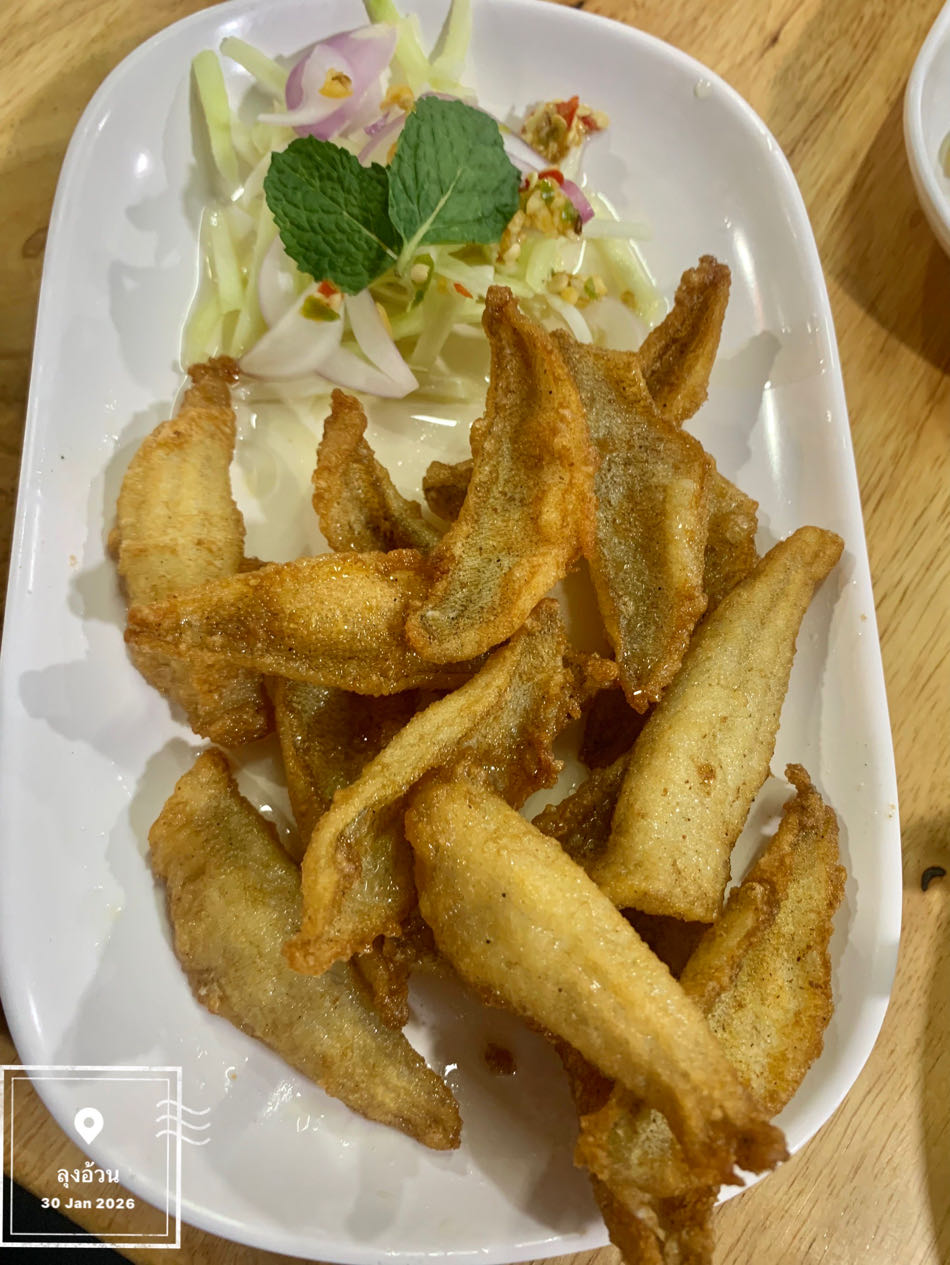 - อาหาร (ปลาเห็ดโคนทอดน้ำปลา) : 120 บาท