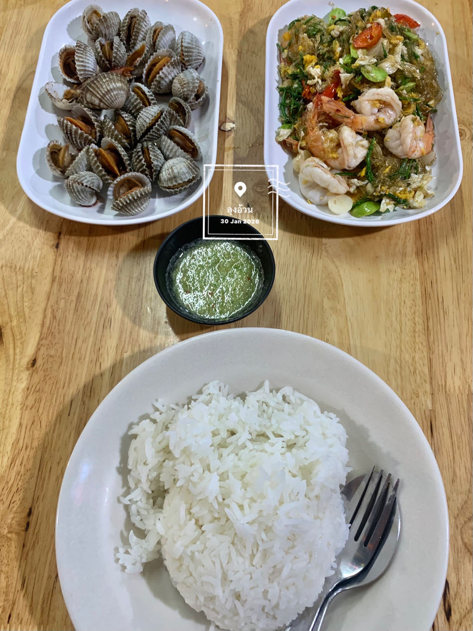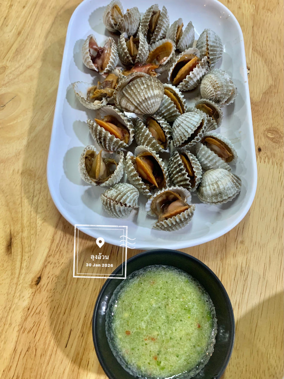 - อาหาร (หอยแครงลวกจิ้ม) : 100 บาท