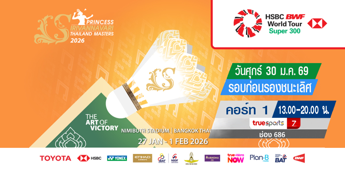 เชียร์สด ! แบดมินตัน PRINCESS SIRIVANNAVARI Thailand Masters 2026 : รอบก่อนรองชนะเลิศ (30 ม.ค. 69) (คู่แรก 13.00 น.)