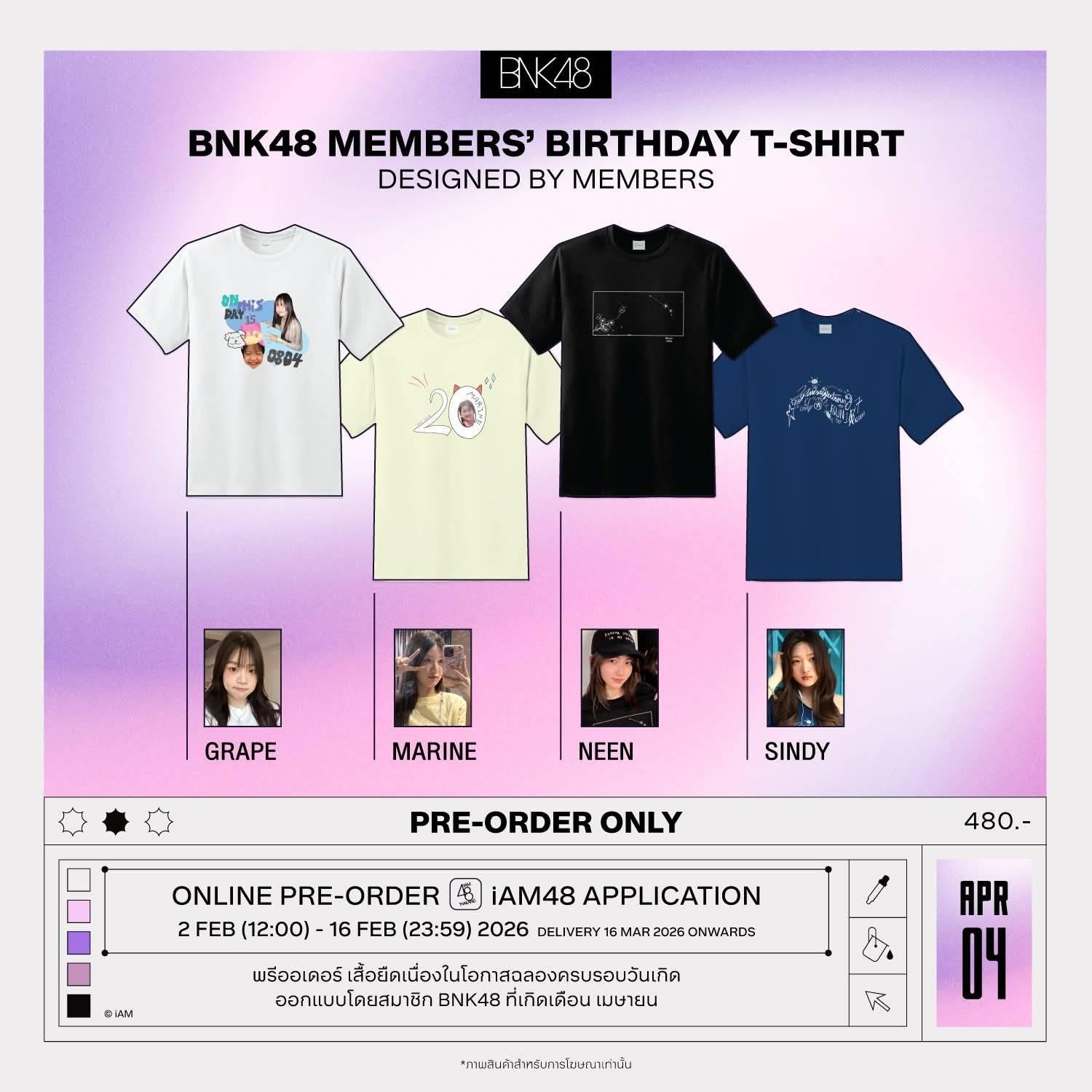 - เสื้อวันเกิดสมาชิก BNK48 ประจำเดือนเมษายน 2569 -