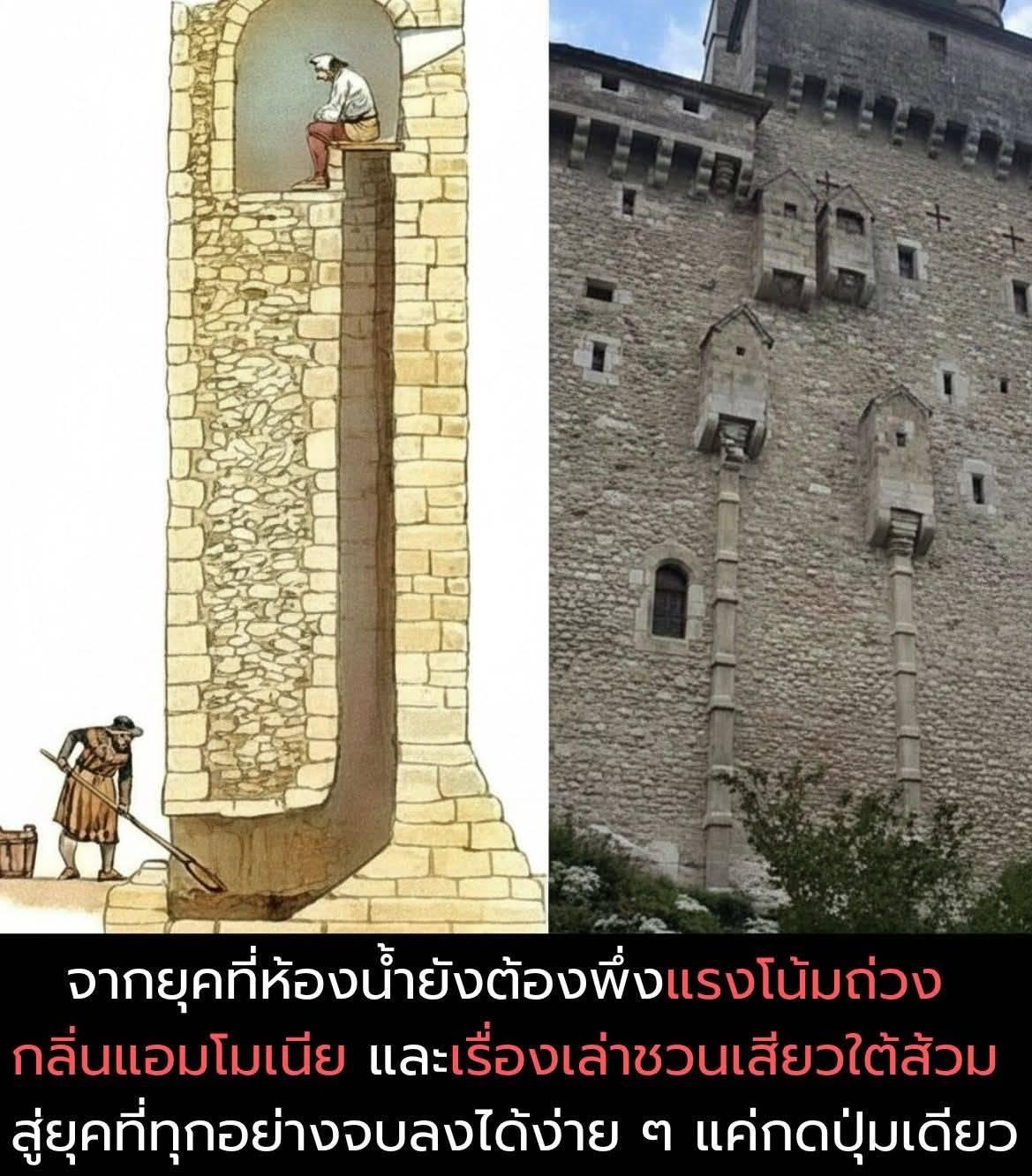 มันคือห้องเล็ก ๆ ที่ยื่นออกมาจากกำแพงปราสาท มีช่องให้ของเสียตกลงไปด้านล่างโดยตรง