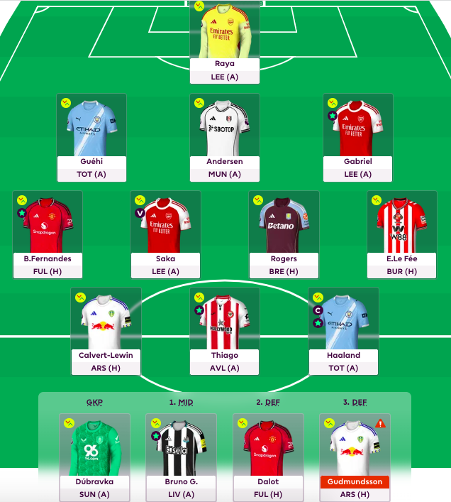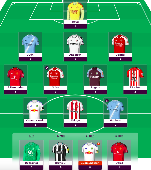มี 2 FTs อยู่ในมือ เลยยังไม่มองถึง WC ในวีคนี้เท่าไหร่ แต่ก็คงต้องตัดสินใจดูดีๆ อีกที เพราะมันก็มีโปรแกรมเทิร์นหลายทีมที่น่าสนใจ ซึ่งก็มีอยู่ในทีมบ้างแล้ว อย่างบรูโน่ ที่เอาเข้ามาล่วงหน้า ส่วน ซาก้า, เธียร์โก้, DCL หรือแม้แต่กระทั่งฮาลันด์ ก็ไม่ถึงกับต้องรีบเอาออกขนาดนั้น ถ้าเลือกไม่ WC