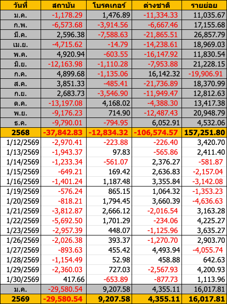 Sinthorn Summary 30/1/2569 : ต่างชาติขายสุทธิ -877.73 ลบ.