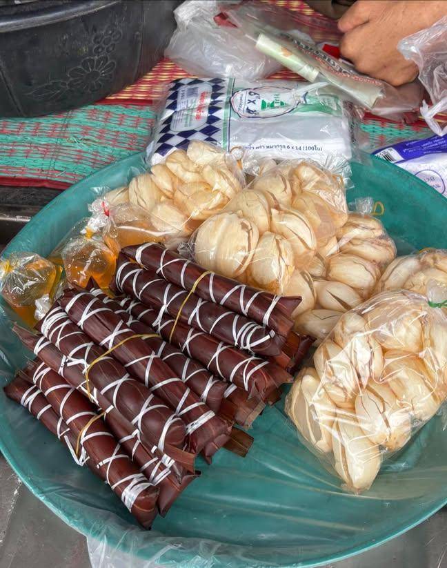 เดือน 6 เพื่อนำไป ถวายพระและแขกที่มาร่วมงานชักพระบก มีลักษณะเป็นแท่งกลม ยาวประมาณ 10 - 15 เซนติเมตร