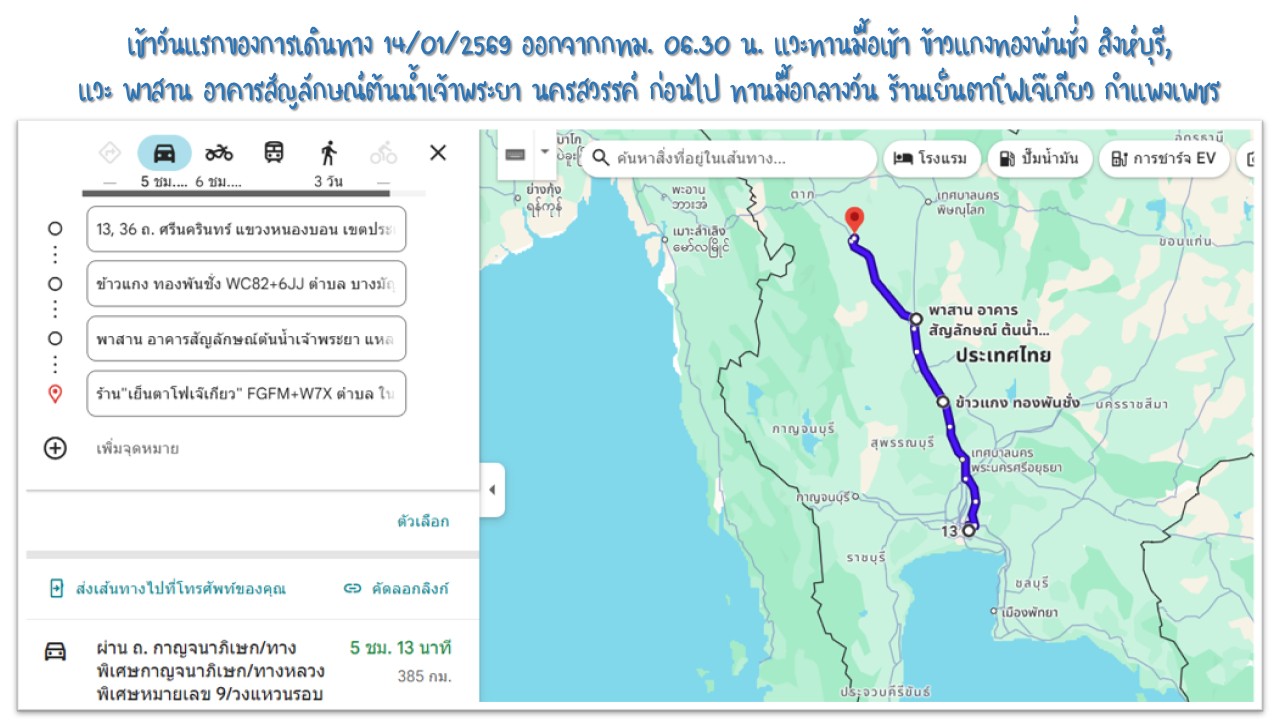 เช้าวันแรกของการเดินทาง 14/01/2569 ออกจากกทม. 06.30 น.