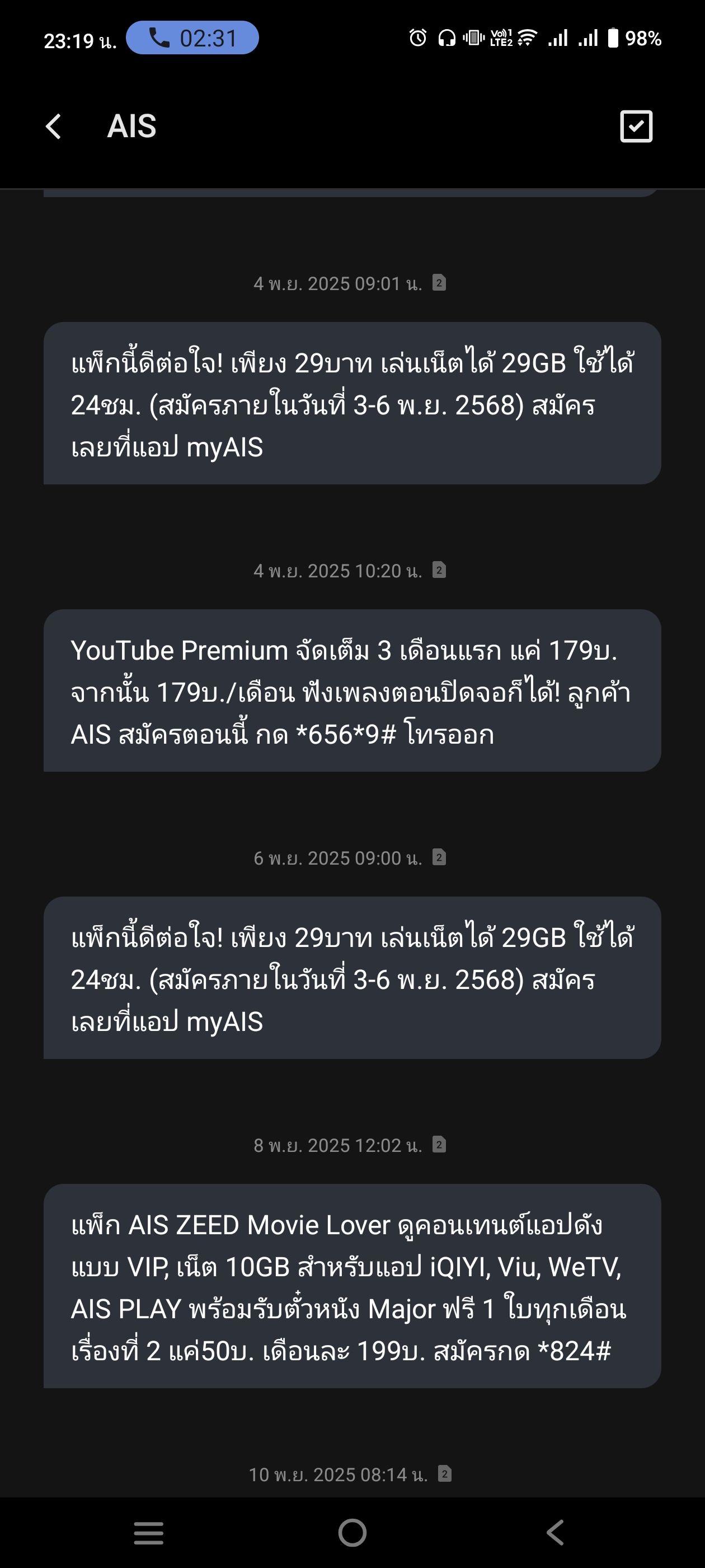 "สวัสดีครับ ผมมี ข้อสงสัย เกี่ยวกับ ยอด บริการ YouTube Premium ครับ คือปกติ ผมมี ยอด รายเดือน ของ AIS อยู่ที่ 267.50 บาท แล้วได้รับ ข้อความ สมัคร แพ็กเกจ YouTube Premium ราคาพิเศษ 3 เดือนแรก 179 บาท เดือนถัดไป เดือนละ 179 บาท ครับ