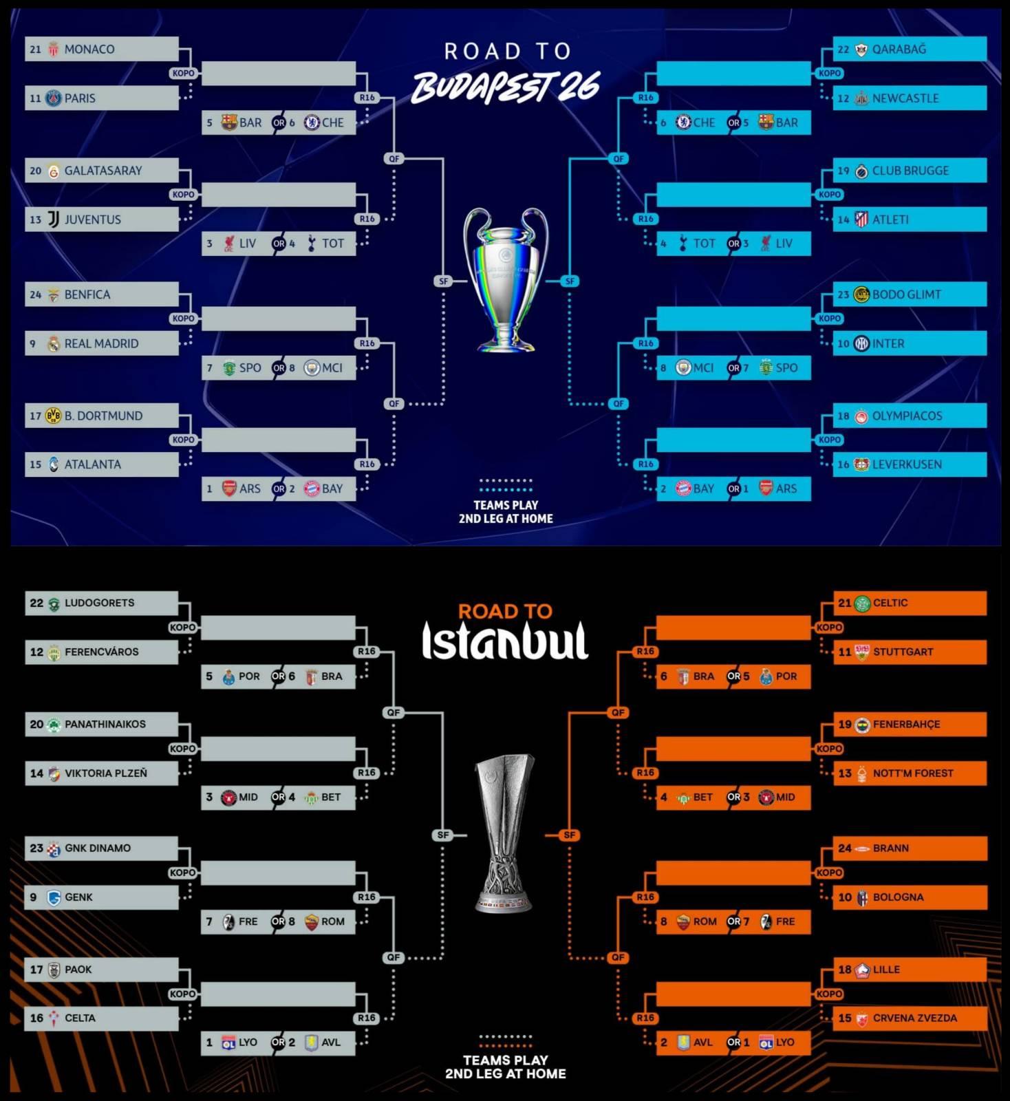 === ผลการจับสลาก UEFA Champions League & UEFA Europa League 2025/26 รอบเพลย์ออฟน็อกเอาต์ ===