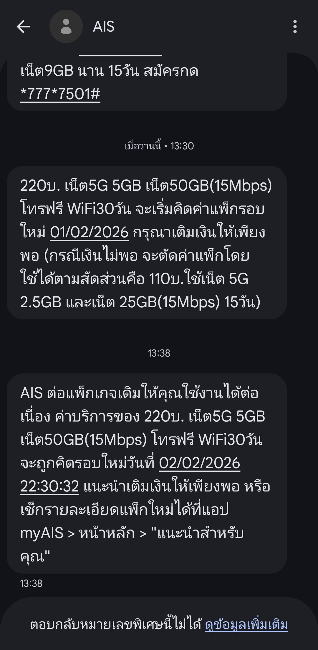 Ais ไม่หักแพ็คเกจแก้ยังไงได้บ้างคะ