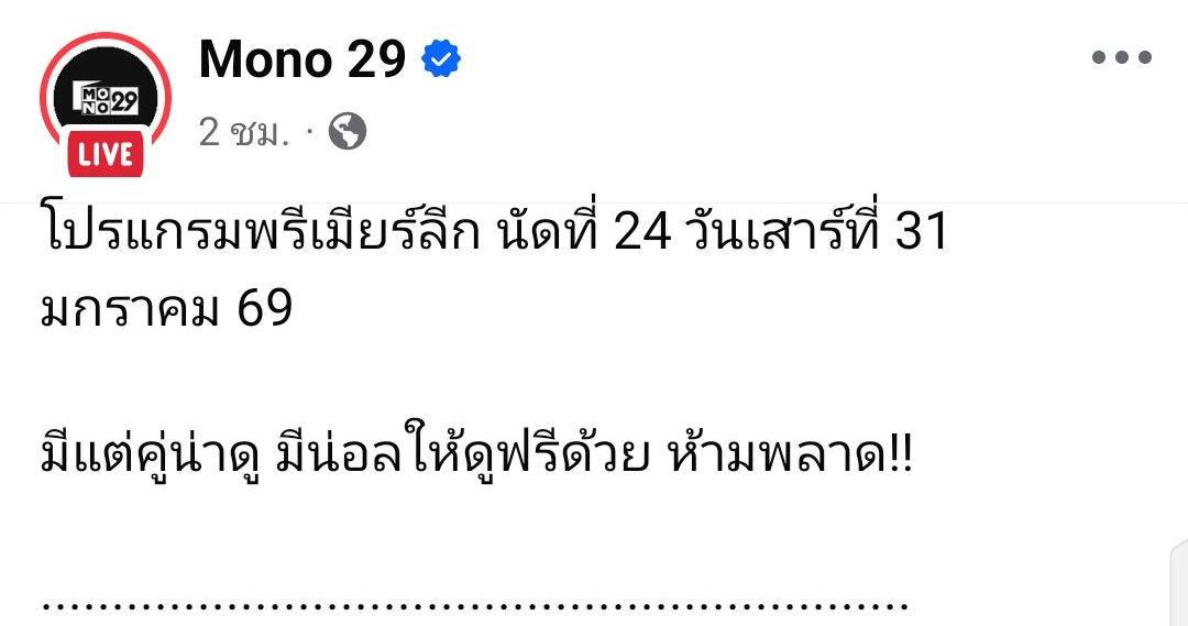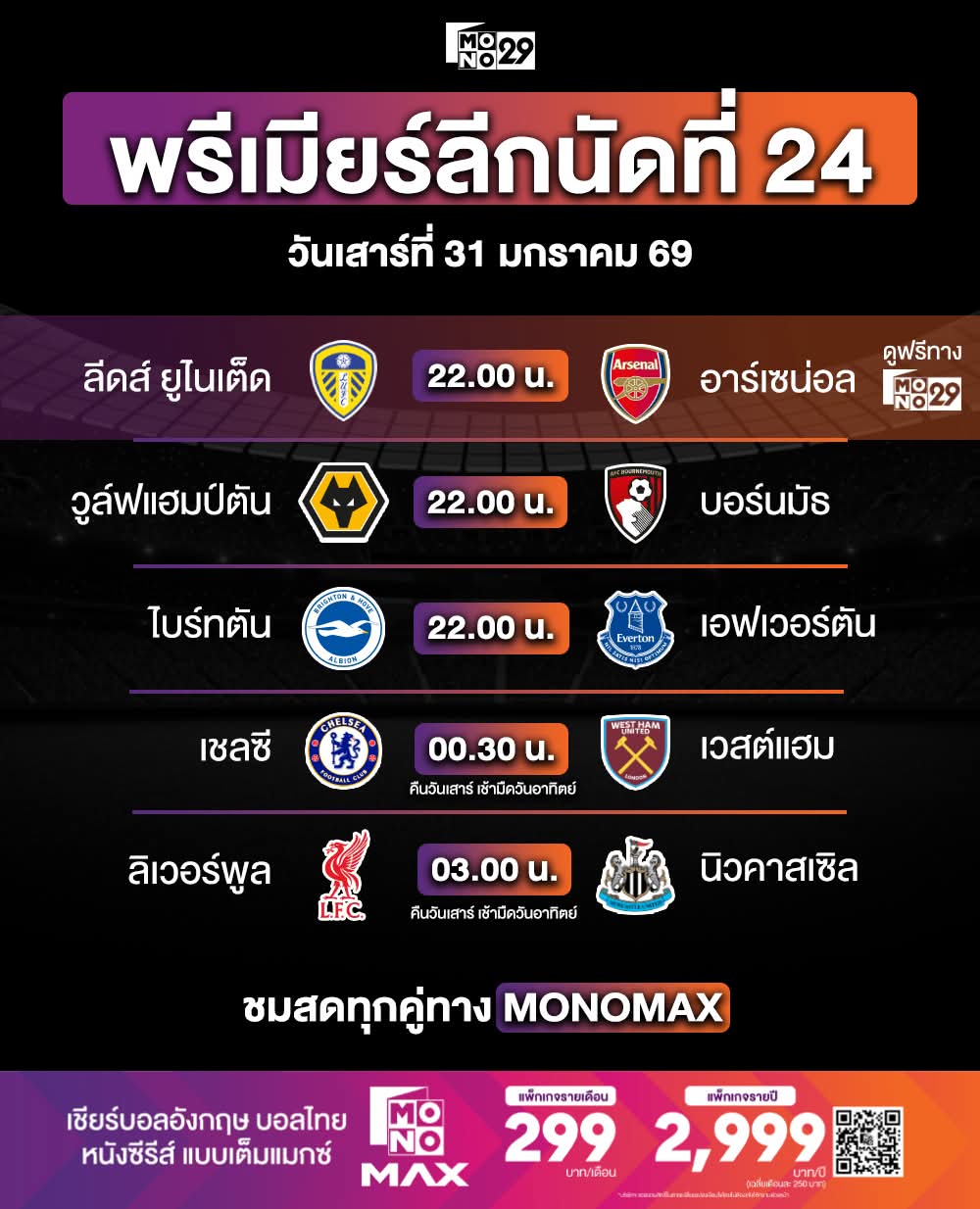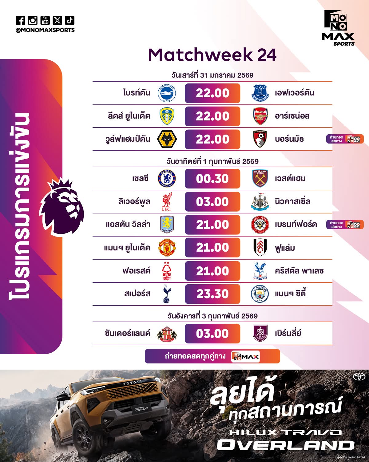 ⚽🏴 พรีเมียร์ลีก นัดที่ 24 🗓️ วันเสาร์ ที่ 31 มกราคม 69 📺 #MONO29 #MONOMAX ห้ามพลาด!! 🔴