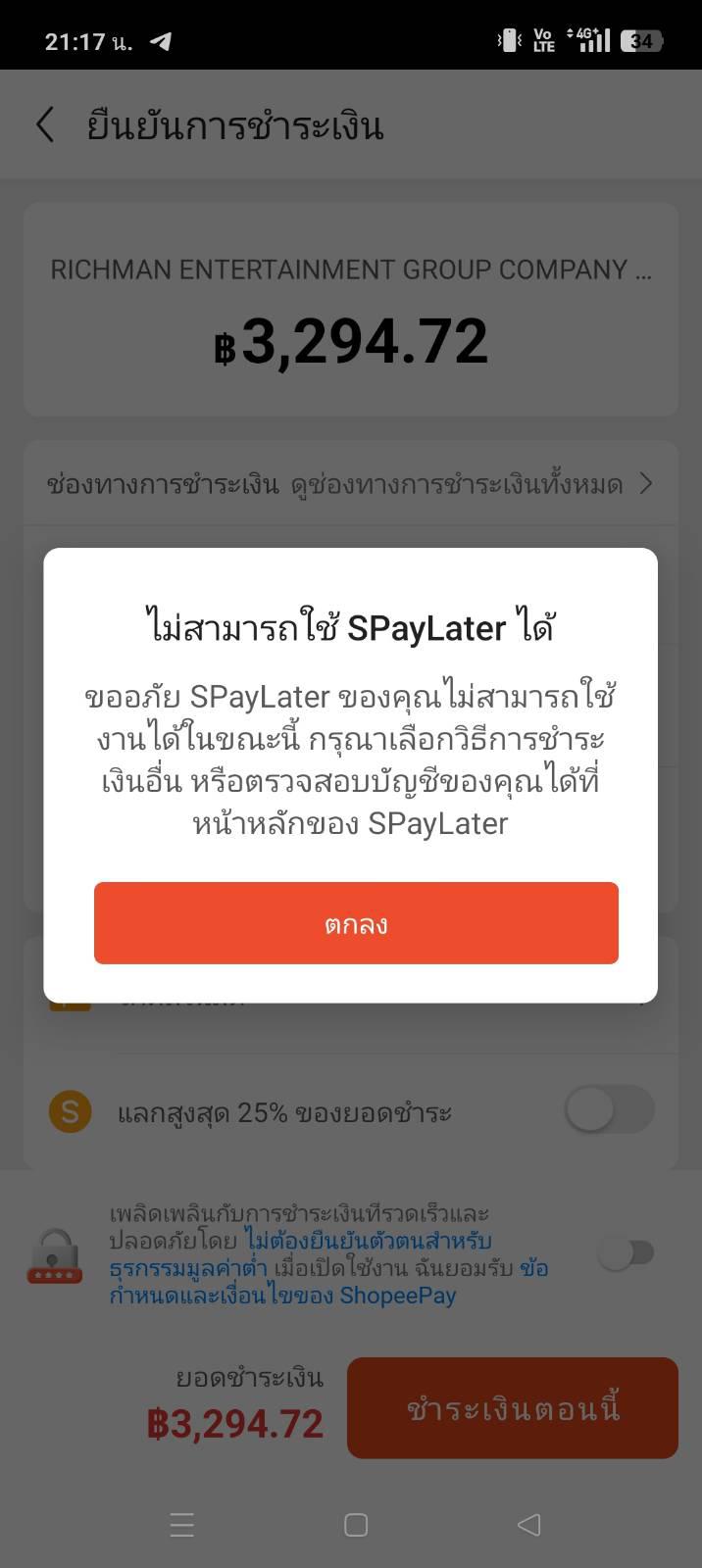 Spaylater ใช้ไม่ได้
